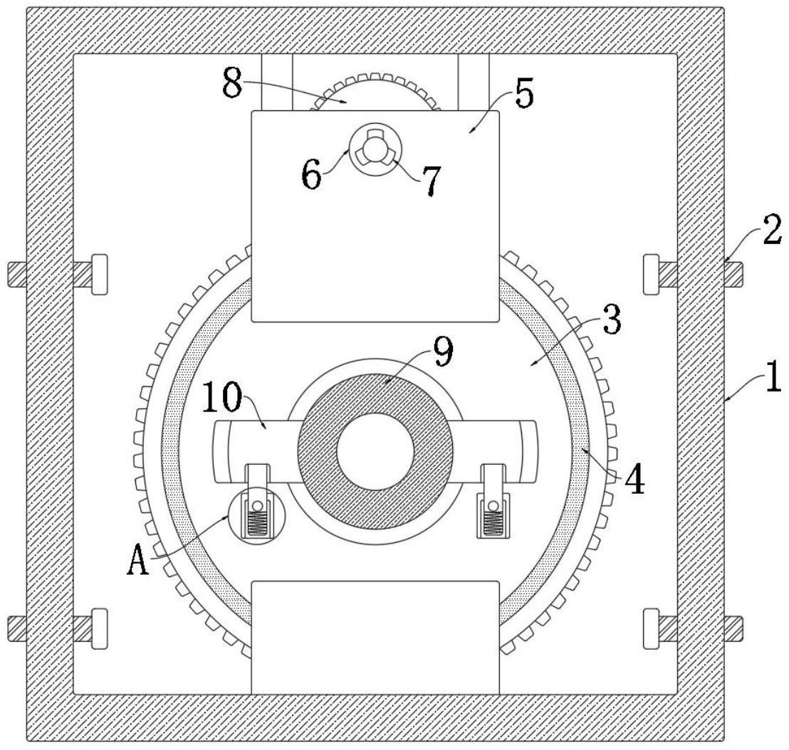 本实用新型公开了一种香炉的表面剖光机构,包括设置于剖光机内的支撑框,所述支撑框通过左右两侧框壁上的多个螺栓与剖光机连接,所述支撑框内设有转盘,所述支撑框上下两侧均设有夹块,所述转盘通过滑动机构与两个夹块连接,位于上方的所述夹块内转动连接有传动轴,所述转盘通过传动机构与传动轴连接,所述传动轴通过卡合机构与剖光机内的电机连接。本实用新型通过设置多个螺栓与卡合机构,代替传统的焊接方式转而利用螺栓带动支撑框与剖光机连接,使得可以在支撑框的带动下使其内部的剖光设备便于拆卸与安装,传动轴也可以很便利的与电机输出轴抽离,从而实现了更加方便与快捷的对支撑框内的剖光设备进行检修与维护。