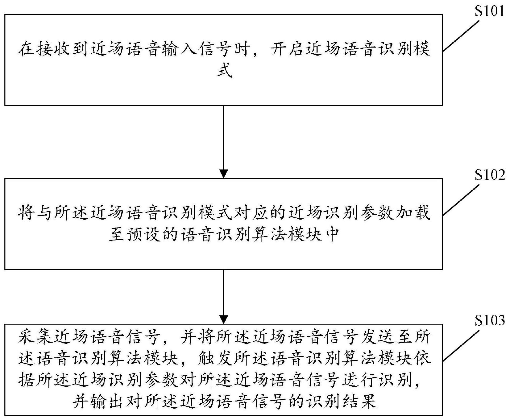 本发明提供一种语音识别方法及装置,所述方法包括:在接收到近场语音输入信号时,开启近场语音识别模式;将与近场语音识别模式对应的近场识别参数加载至预设的语音识别算法模块中;采集近场语音信号,并将近场语音信号发送至语音识别算法模块,触发语音识别算法模块依据近场识别参数对近场语音信号进行识别,并输出对所述近场语音信号的识别结果;应用本发明,在进行远场语音识别模式和近场语音识别模式之间的切换时,无需重新启动设备,可有效提高设备的响应效率,提高用户的应用体验。