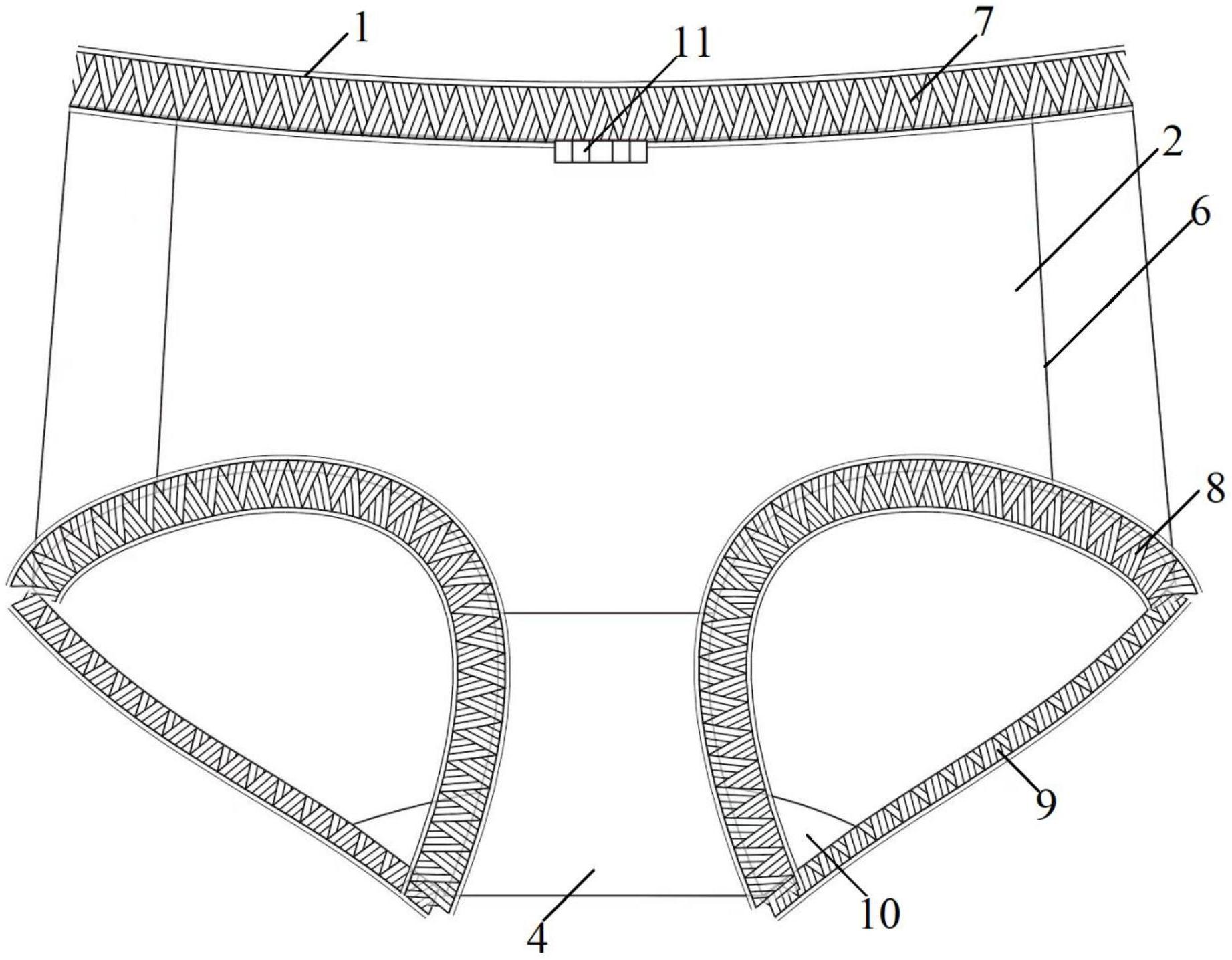 本实用新型提供一种女性内裤,包括内裤本体,内裤本体包括腰头、前幅块、后幅块、前幅面浪、后幅面浪、裆里,腰头分别与前幅块、后幅块缝合连接;前幅块与后幅块通过侧骨缝合在一起;前幅面浪位于前幅块之下,且与前幅块拼接缝合;后幅面浪位于后幅块之下,且与后幅块拼接缝合;内裤本体下端设置有脚口,脚口处设置有前脚口花边和后脚口花边,且前脚口花边和后脚口花边分别与前幅块和后幅块缝合在一起;前幅块、后幅块下端还缝合连接有底裆,且所述的前幅块、后幅块、底裆均采用再生纤维面料制作而成。本实用新型通过侧骨解决较短边长在穿着上的不适、加大受力面值,通过后幅块的包裹,可以有效的控制臀部赘肉由于运动所带来的尴尬。