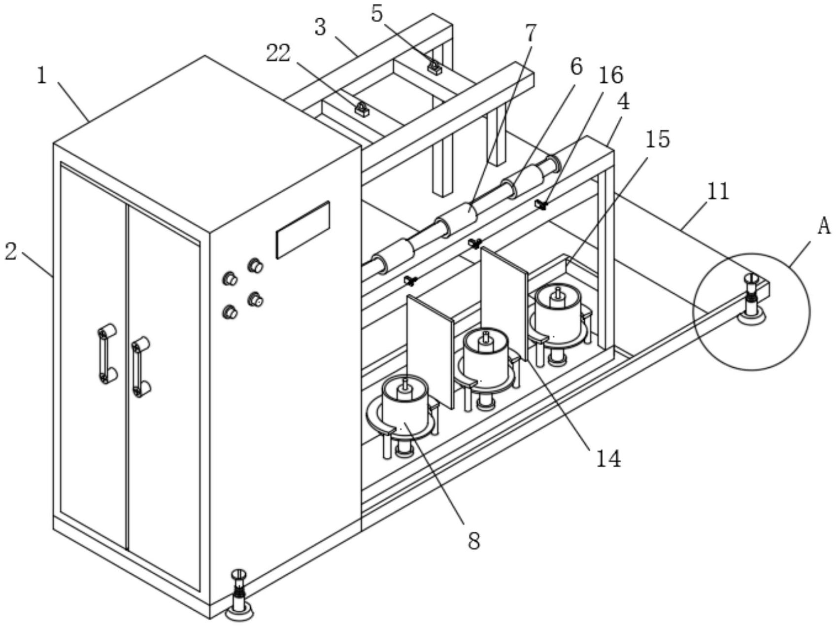 本实用新型涉及捻线机设备技术领域,公开了一种高速捻线机,包括捻线机,所述捻线机的外表面设置有配电柜,所述配电柜的一侧固定连接有连接架,所述连接架的下表面设置有捻纱架,所述捻纱架的上表面设置有插腚,所述插腚的外表面套接有筒子。本实用新型具有以下优点和效果:捻线机通过由配电柜、连接架、捻纱架、纱线筒等结构活动连接组合而成,连接架与捻纱架两者把其中的结构分割开来,使捻线机整体结构更加简洁明了,便于机器在出现问题时能够快速定位问腿区域,半圆环挡片设置在纱线筒的外表面,支撑柱把半圆环挡片固定在捻纱架底部的上表面,用于防止纱线筒在绕线或退线的过程中,由于高速旋转而出现移位的现象发生。
