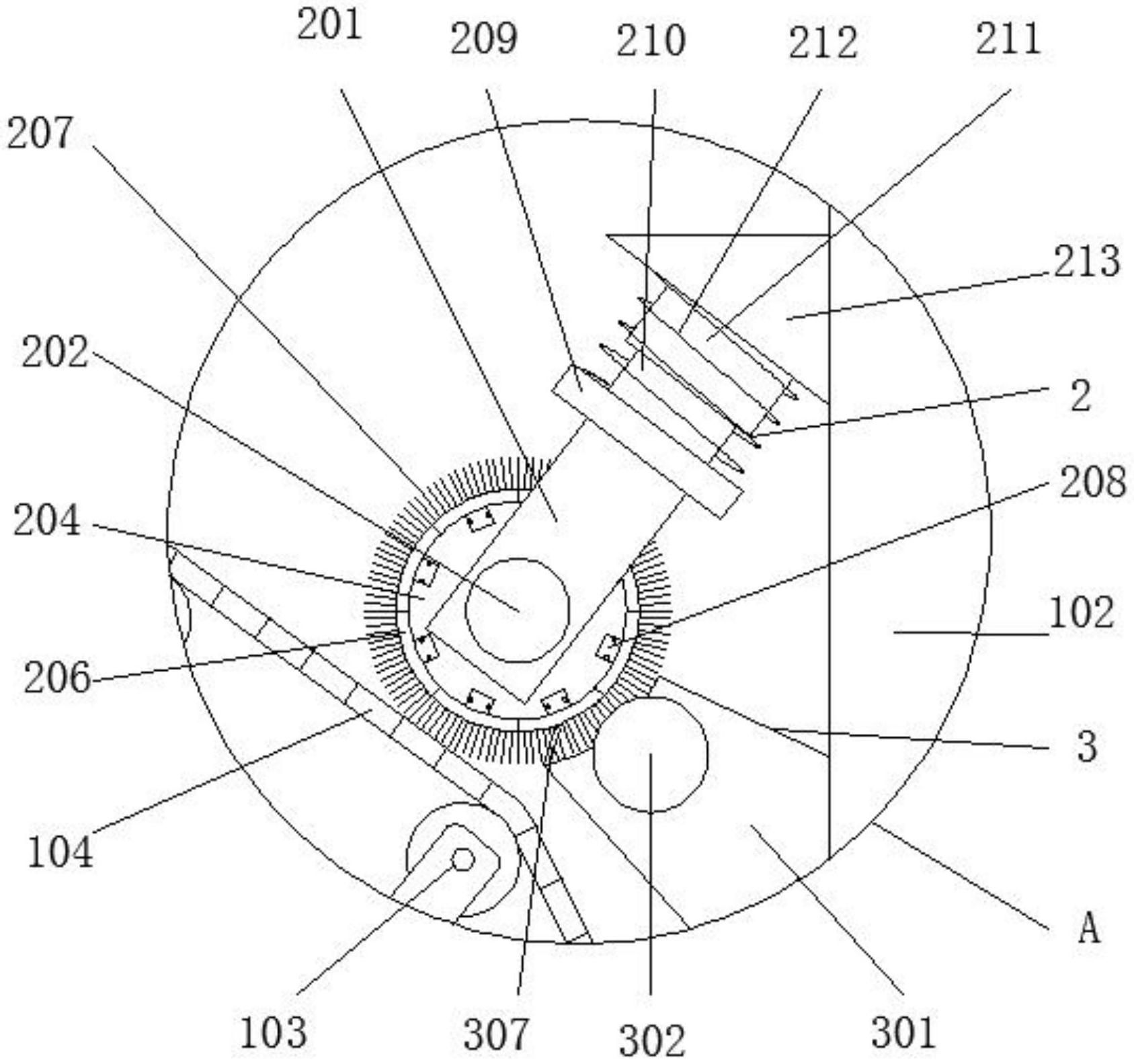 本实用新型涉及梳棉机清洁的技术领域,尤其为一种梳棉机用自动清洁装置,包括梳棉机组件和清洁组件;通过清洁组件的设置,梳棉机工作的同时,第一电机也工作,第一电机主轴带动第一转轴转动,从而带动第一转轴固定连接的滚轮转动,卡接在滚轮上的T型卡块及刷板一起转动,使得刷板上设置的刷毛圆周运动并对盖板上积蓄的杂质和短绒进行清理,其中设置安装板用于固定滚轮的位置,并且刷毛长时间使用后需要更换,所以T型卡块采用卡接的方式安装在滚轮上,需要更换时,可直接将T型卡块抽出,从而对刷毛进行更换,综上,通过上述清洁组件的设置,解决了盖板清洁时梳棉机无法正常工作的问题,提升了梳棉机的工作效率。