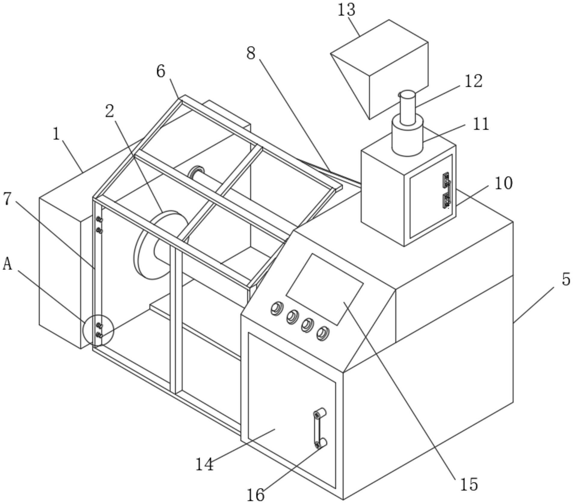 本实用新型涉及整经机设备技术领域,公开了一种高效高速整经机,包括传动箱,所述传动箱的外表面的一侧固定连接有限位圆盘,所述限位圆盘的外表面固定连接有轴承,所述轴承的内部固定连接有收线筒,所述收线筒的一端固定连接有操控箱。本实用新型具有以下优点和效果:通过在整经机的外部设置第一防护框架和第二防护框架,两个防护框架把整经机内部收线筒等结构框了起来,起到了很好的保护作用,第一防护框架与一端连接的支撑杆形成了一定的夹角,操控箱上表面的吸附板,接通电源之后,主动吸收整经过程中纱线与机器结构之间因摩擦产生的毛絮,把毛絮吸附到收集箱中,达到了吸收毛絮的目的,也有益于员工作业时的身心健康。