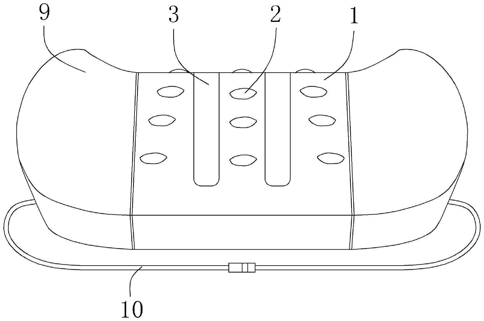 本实用新型公开了一种护椎记忆绵腰靠,包括主体,所述主体上表面呈曲线结构,所述主体的左右两侧均设置有连接块,所述连接块的外端呈弧形结构,所述主体的上表面均匀分布有按摩凸起,所述按摩凸起的内侧设置有加热片,所述加热片嵌入在主体的内部,且加热片上表面与主体上表面平齐设置,所述连接块的内端连接有伸缩机构。本实用新型通过设置有一系列的结构,使得腰靠不易形变,且可以对使用者背部有效承托,并且还具有按摩等功效。