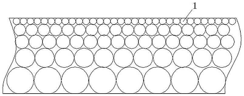 本发明涉及一种环保除尘过滤材料,公开了一种纺粘长丝过滤材料。其特征在于:所述的纺粘长丝过滤材料为纤维长丝缠绕而成的多层结构,每一层结构均为长丝纤维铺置成的网状。所述的纺粘长丝过滤材料每一层的长丝直径不同,迎尘层长丝直径最小,从迎尘层开始长丝直径逐步增大。本发明采用表层过滤的方式,迎尘层孔径最小,将粉尘过滤在布料外,不会造成过滤材料阻塞,沉积在表层的灰尘易于清除,过滤效果好;过滤材料强度韧性好、使用寿命长;长丝和过滤材料易于生产,节约成本。