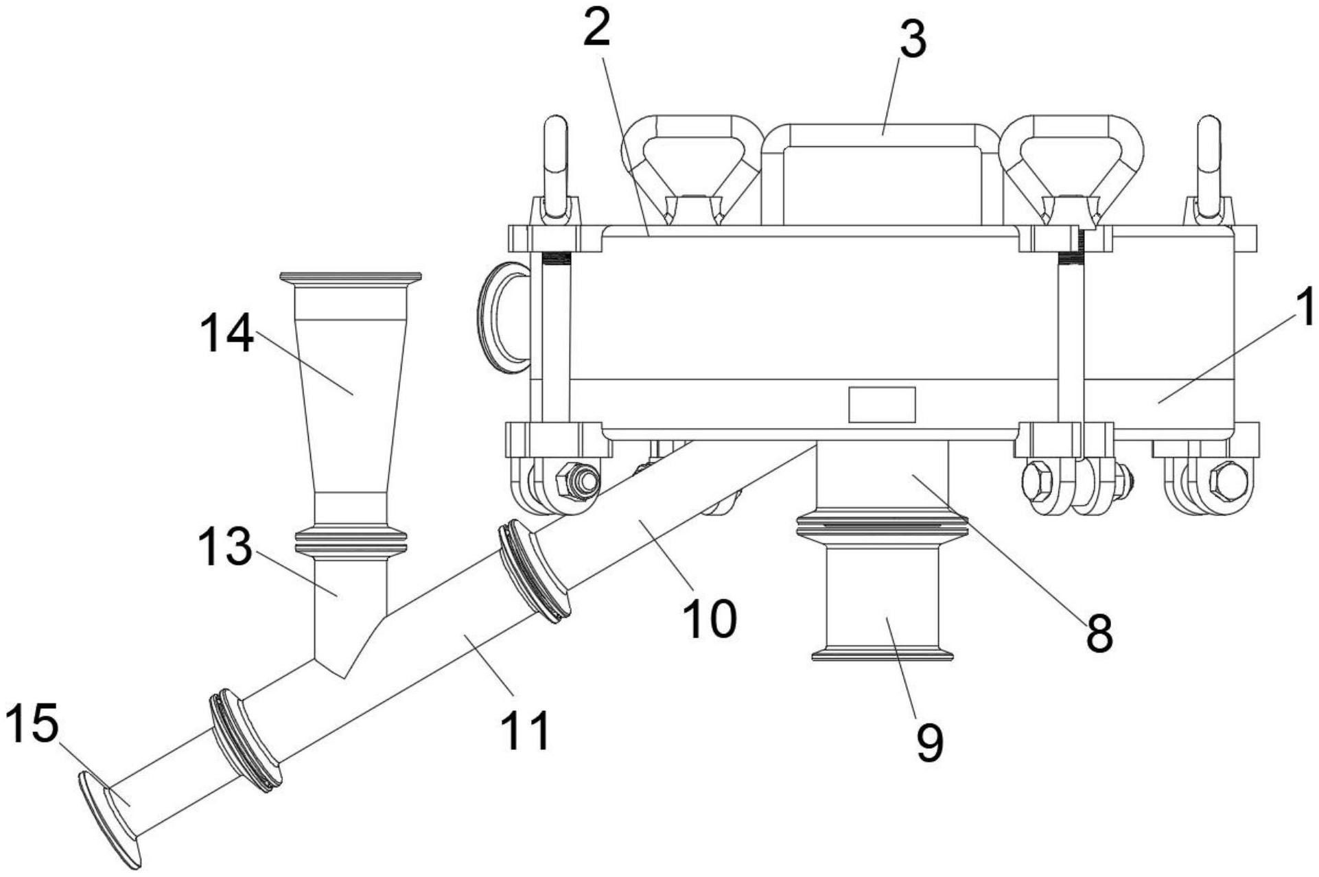 本实用新型涉及粉碎机技术领域,公开了一种药物粉碎机,包括粉碎机本体,所述粉碎机本体上端可拆卸设置有上盖,所述粉碎机本体一侧固定设置有粉碎压力进口,所述粉碎机本体内部固定设置有粉碎环,所述粉碎环内部形成粉碎腔,所述粉碎环侧壁等距开设有六个斜孔,所述粉碎机本体内中部固定设置有出料管,所述出料管下端固定连接有第一连接管,所述粉碎机本体下端中部倾斜设置有第二连接管,所述第二连接管上端伸入粉碎腔内部,所述第二连接管下端可拆卸连接有进料管,所述进料管内部且靠近第二连接管的一端设置有文丘里管。本实用新型中,该装置可以实现降低粉碎粒径,增加粉碎时间,提高粉碎效率,提高设备适用性和运行稳定性。