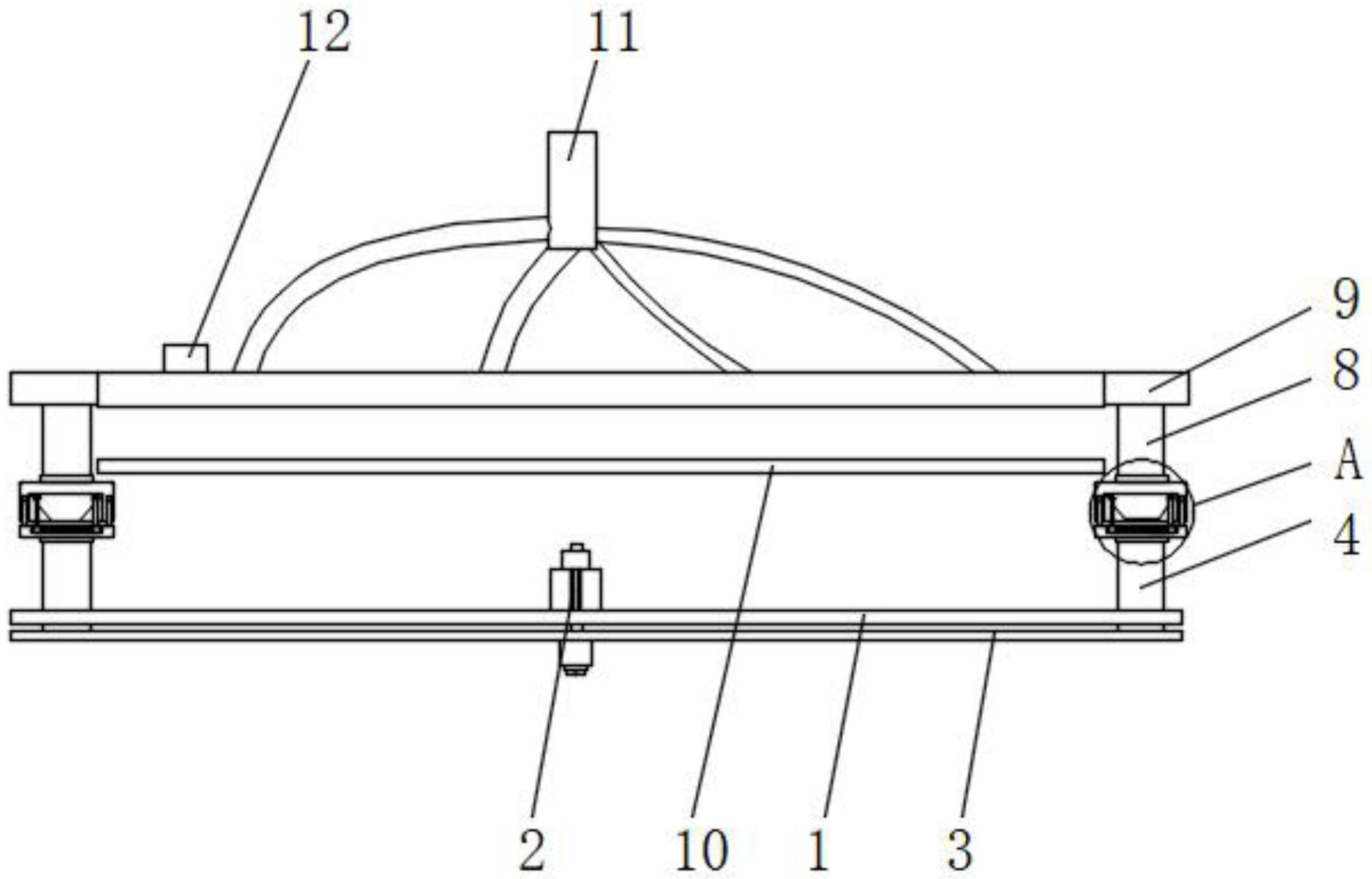 本实用新型公开了一种吸塑成型缺陷的新型检测装置,属于医药和食品加工设备技术领域,包括固定支架,所述固定支架的上表面卡接有气缸,所述气缸的输出端外表面固定连接有底板,所述底板的上表面固定连接有两个第一升降杆,所述第一升降杆的顶端与下缓冲板的下表面固定连接;本实用新型,通过设置有第一升降杆、吸盘板、真空管路和压力检测开关,设备运行过程中,气缸动作,吸盘板与底板往下移动,吸盘板通过真空介质吸取成型泡罩,压力检测开关显示数值,判断是否合格,合格产品流入下道工序,不合格产品被剔除,综上所述,通过密封性检测,可以实现彻底解决吸塑成型烫洞缺陷导致成型检测不能检测剔除带来产品外观质量隐患的风险。