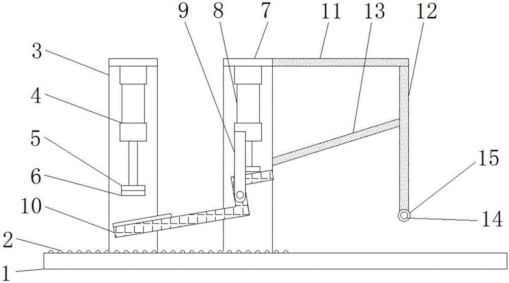 本实用新型公开了一种基于活动托盘的古典琴马粘接装置,包括底板、第二固定架和固定杆,所述底板的顶端镶嵌有凸点,且凸点的外侧设置有第一固定架,所述第一固定架的内侧焊接固定有下压气缸,所述第二固定架设置在第一固定架的右侧,所述托盘气缸的外侧设置有固定板,且固定板的底端连接有活动托盘,所述活动托盘包括连接板、通孔、调节板、顶板、减压垫,所述连接板的顶端连接有调节板,所述固定杆焊接固定在第二固定架的右上端,所述连接杆的中部左侧设置有支撑杆。该基于活动托盘的古典琴马粘接装置,解决了古典吉他粘琴马后面板凹陷问题,使得琴马粘贴的位置偏移误差更小,便于使琴马粘贴更牢固、扎实,明显减少音梁断裂、音梁脱胶现象。