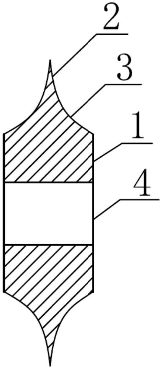 本实用新型公开一种防止管材外翻边的切割刀具,包括刀盘及环绕刀盘边沿设置的刀锋,所述刀盘与所述刀锋间通过向内凹陷的圆弧面过渡,以使所述刀锋在所述刀盘边沿形成尖锥突出状。本实用新型的切割刀具对管材进行环绕切割时,可有效防止管材端口外翻边,有使管材端口形成一个圆弧倒角,令管材与管件连接更加方便快捷。