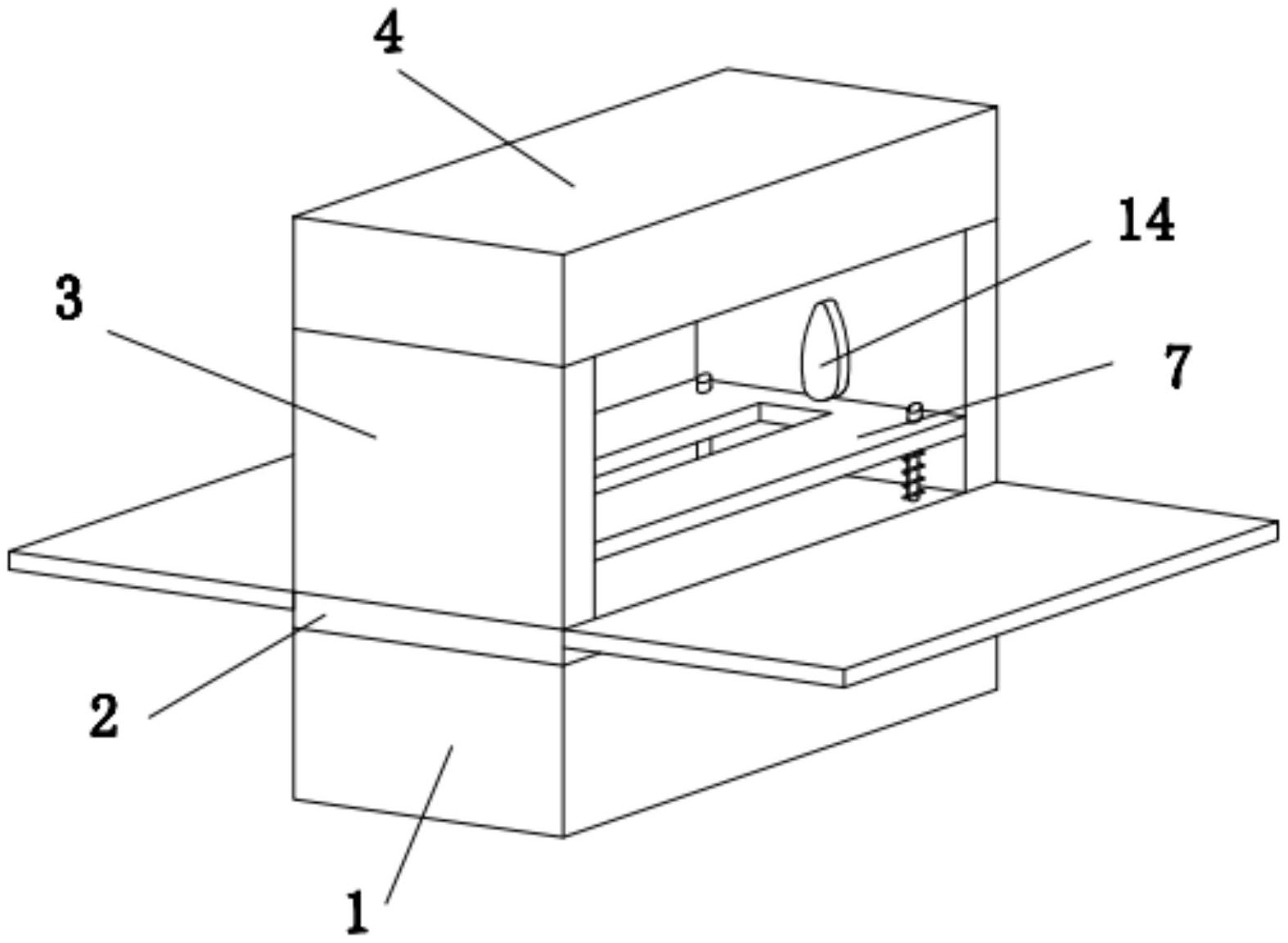 本实用新型属于切割设备领域,尤其是一种用于床垫加工的海绵切割装置,包括支撑箱,所述支撑箱的顶部固定安装有切割台,切割台的顶部固定安装有两个竖板,两个竖板的顶部固定安装有驱动箱,驱动箱上设有切割机构,切割台的顶部呈矩形固定安装有四个导向杆,四个导向杆上滑动套设有框板,框板的底部固定安装有复位弹簧,复位弹簧的底端固定设置在切割台上,竖板的底部开设有移动槽,移动槽内滑动安装有移动座,移动座的底端固定安装有连接杆,移动槽的一侧内壁上转动安装有转动杆。本实用新型设计合理,通过框板的移动能够对海绵进行压紧固定和解除固定,通过切割机构便于对固定的海绵进行切割。