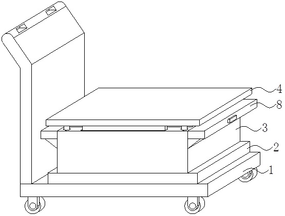 本实用新型公开了一种货物运输用防护机构,包括底板,所述底板的顶部设置有升降板,所述升降板的顶部固定连接有防护箱,所述防护箱的顶部活动连接有防护盖,所述防护盖底部的四角均固定连接有滑杆。本实用新型通过设置防护箱、防护盖、限位杆、限位孔、限位槽和稳定机构的配合使用,通过防护箱和防护盖的使用,可以对货物进行有效的防护,通过限位杆穿过限位孔并插入限位槽的内腔,可以对防护盖的位置进行固定,通过稳定机构的使用,提高了防护盖在移动过程中的稳定性,解决了现有升降推车在使用的过程中,如果货物放置位置不当,容易导致货物从升降推车的顶部掉落的问题,该货物运输用防护机构,具备防掉落的优点。
