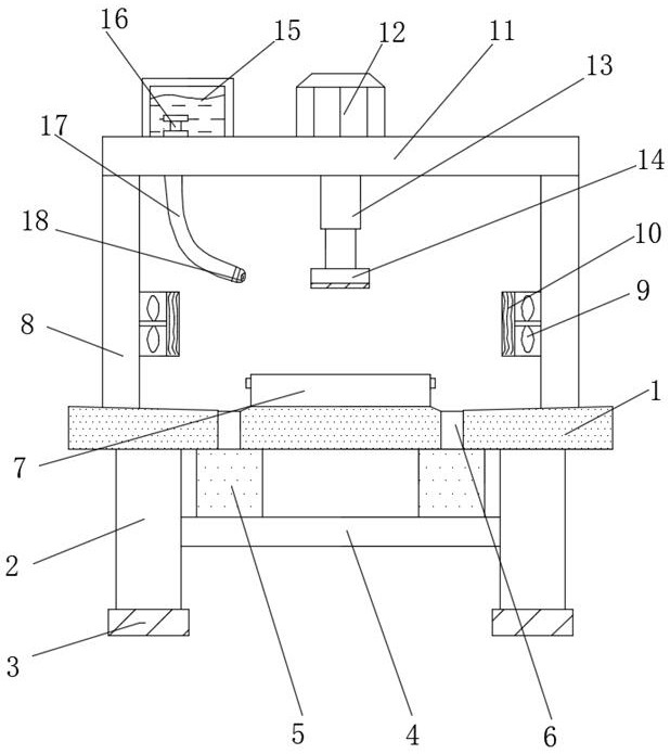 本实用新型公开了一种夹胶玻璃侧边修磨用固定装置,包括底板,所述底板的底部固定连接有支撑腿,所述支撑腿的底部套设有支撑垫,且所述支撑腿之间设置有连接板,所述连接板的两端与支撑腿固定连接,所述底板的上方两侧连接有支撑杆,所述支撑杆的顶部固定连接有顶板,所述顶板的顶部中心处安装有电机,所述转轴延伸至顶板的下方固定连接有修磨板。该夹胶玻璃侧边修磨用固定装置,加工台内设置有夹板,通过夹板可以将玻璃竖直着夹持固定,防止玻璃在修磨的过程中错位移动,而影响加工的精度,加工台内部安装有补光灯,补光灯能够起到良好的照明效果,从而在修磨的过程中起到补光的作用,方便观察玻璃侧边的毛边等现象,有利用提高玻璃修磨的效率。