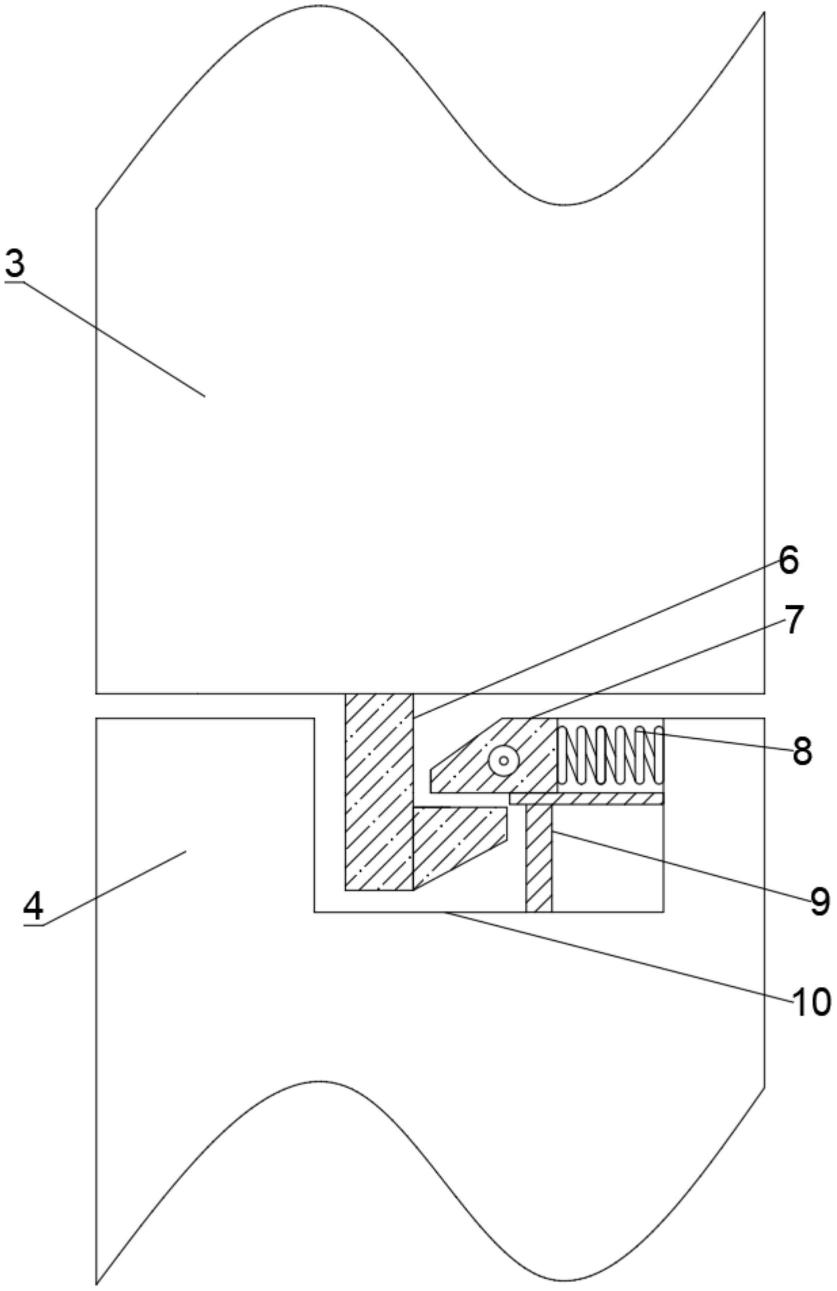 本实用新型公开了一种萨克斯弱音器低音区音色控制器,包括支撑架,支撑架下方设有一组气流分流体,气流分流体外表面固定有相互对称的第一连接柱和第二连接柱,第一连接柱和另外一个气流分流体上的第二连接柱相互卡合,第一连接柱靠近第二连接柱的一端固定有L形斜面卡块,第二连接柱靠近第一连接柱的一端开设有凹槽,凹槽内固定有L形支柱,L形支柱上表面滑动连接有梯形斜面卡块,梯形斜面卡块右侧表面固定有第一弹簧,第一弹簧固定于第二连接柱,L形斜面卡块与梯形斜面卡块卡合适配;本实用新型通过设置拆卸结构,使得气体分流体之间可以便捷快速的进行拆卸和安装,从而便于调节其使用个数,有效的提高了装置便捷度和通用性。