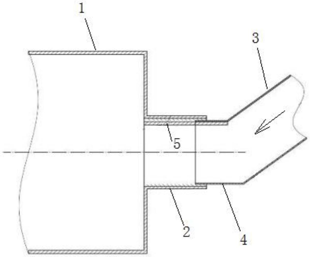 本实用新型提供了一种自动清理钢球磨机螺旋管粘结物料的装置,结构是:进料管末端弯折形成水平管段,以水平管段与钢球磨机的螺旋管管口相衔接,用于向钢球磨机输送待研磨的物料;以高铬耐磨合金钢为材质的呈矩形板状结构的刮板板长方向沿着所述螺旋管中轴线布置,板面竖置,朝向外侧的端部焊接在所述进料管水平管段的内管壁顶端中部,露出于水平管段外的板段朝内悬伸于螺旋管内腔的顶部,与螺旋管内壁顶端之间竖向保留5‑8mm的间距,所述刮板朝内一侧的板端延伸至齐平于螺旋管的内侧管口。本实用新型替代了人工清除的传统方式,能够降低人力成本、提高作业效率,免除人工清除带来的安全隐患。
