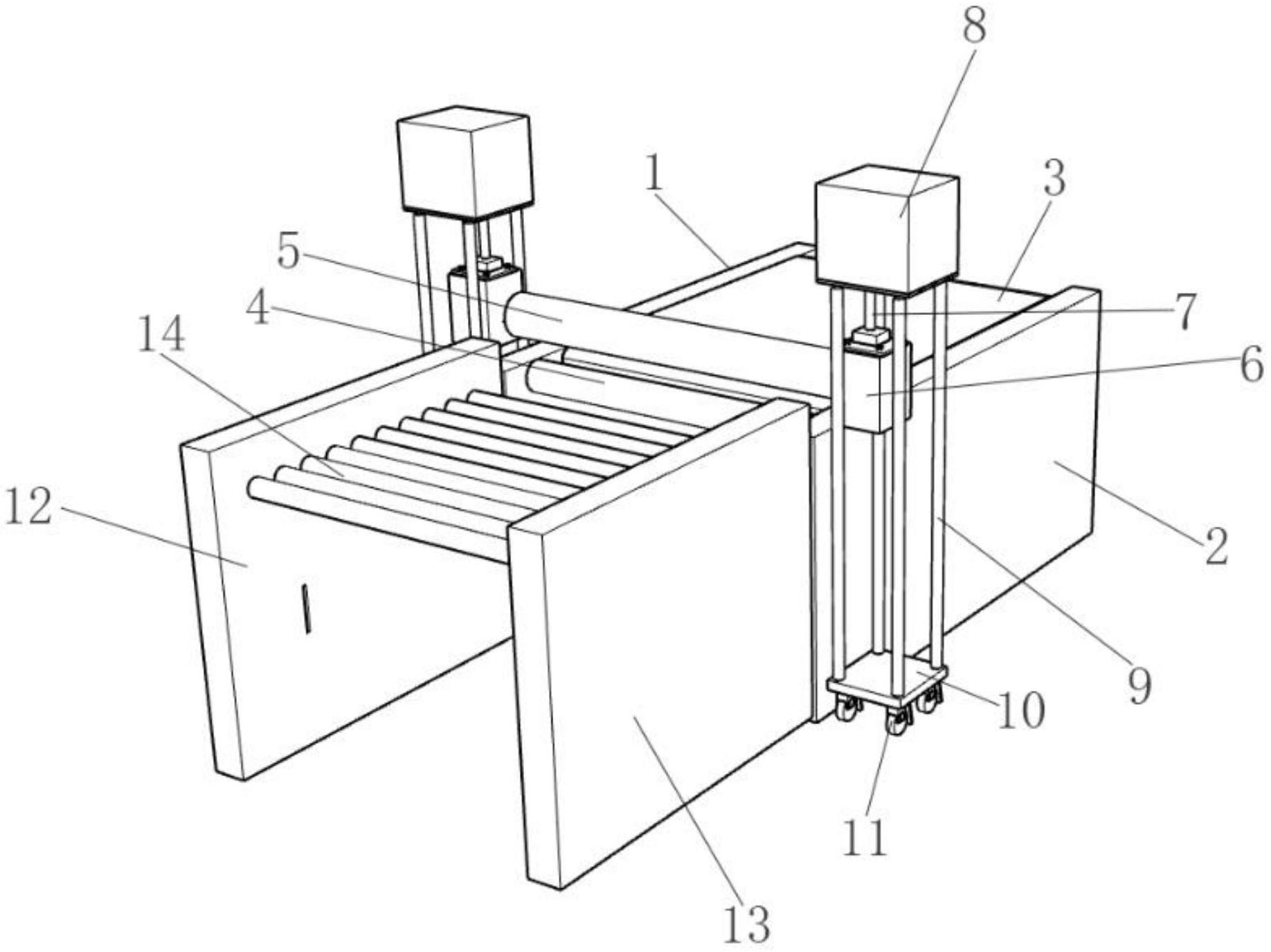 本实用新型涉及纹路加工技术领域,且公开了一种便于更改水波纹间距的纹路加工设备,包括支撑板一,所述支撑板一的一侧设有支撑板二,所述支撑板一的顶端一侧设有传送带,所述传送带一端固定连接在支撑板一顶端一侧,本实用新型通过设有机盖一、机盖二、支撑柱、底座、万向轮,有利于将主动辊与支撑板一、支撑板二、传送带分开,使主动辊成为一个可独立运行的机构,当需要更换不同间距的纹路时,通过万向轮可将主动辊从工作区运送至拆卸车间,增大工人操作空间,便于主动辊的更换,通过设有气缸组件,有利于调节机盖一的高度,从而调整主动辊与被动辊之间的距离,方便对不同厚度的木板进行纹路刻制。