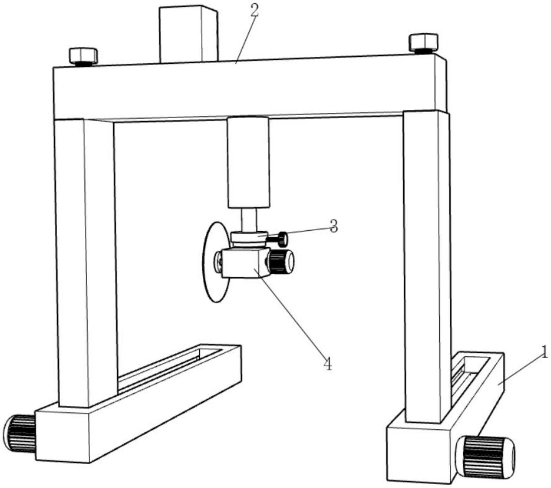 本实用新型涉及切割设备技术领域,更具体地涉及一种基于无机非金属材料加工用切割设备,包括切割结构,所述切割结构包括切割块,所述切割块的前部与背部均开设有切割动力孔,所述切割块的背部设有切割动力柱,所述切割动力柱的前部固定连接有切割啮合齿轮,所述切割动力柱的背部固定连接有切割紧固盘,所述切割紧固盘的背部设有四个拆卸螺栓,所述切割紧固盘的背部设有切割刀,所述切割刀的背部开设有四个切割紧固挖孔所述切割块的前部设有切割电机,通过设有切割紧固盘,可对其方便刀盘的更换,可以选取最为适合的刀盘进行切割物品,通过设有旋转结构可以使其能够自由地旋转,防止物品质量较大造成旋转物品不便,造成使用者身体劳累。