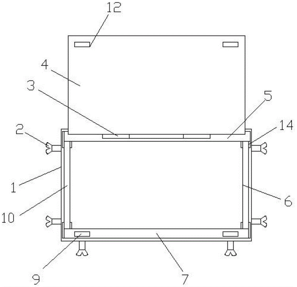 本实用新型公开了一种可循环利用的石材包装箱,包括底板、两个侧板、正面板和后面板;所述底板前侧的上下左右四侧均开设有插槽且上下两侧的两个插槽和左右两侧的两个插槽分别为水平设置和垂直设置;两个所述侧板分别设置在底板左右两侧的两个插槽上,所述正面板和后面板分别设置在底板上下两侧的两个插槽内。本实用新型由于正面板和后面板朝内一侧的两端均固定安装有限位座,便于通过八个螺栓和八个螺纹孔,将正面板、后面板和两个侧板固定在相应的插槽上的同时,使两个侧板也会受到四个限位座的作用,和正面板与后面板之间保持稳定状态,从而使得本箱体组成可拆卸结构,以便于随时对损坏的组件单独更环,有利于降低使用成本。