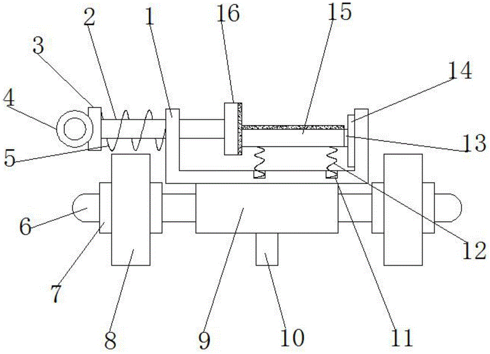 本实用新型公开了一种石材短程运输独轮运输设备,包括定位板,所述定位板内右侧置有载板,所述载板底部左右两侧均固定连接有弹簧b且弹簧b设有若干组,所述弹簧b底端置于凹槽内,所述载板左侧置于压板,所述压板左侧中部固定设置有活动杆和活动杆贯穿于定位板左壁顶部,所述活动杆左端安装有推动板,所述活动杆靠近定位板的左侧缠绕有弹簧a。本实用新型通过定位板,在少量石材短程运输期间,工作人员扶持定位板内的石材顶部,并推动石材带动定位板下方的行走轮移动,可替代较大运输设备运输少量石材,且本运输设备体积小,结构简单,造价成本低,符合少量石材短程运输需求,适合广泛推广与使用。