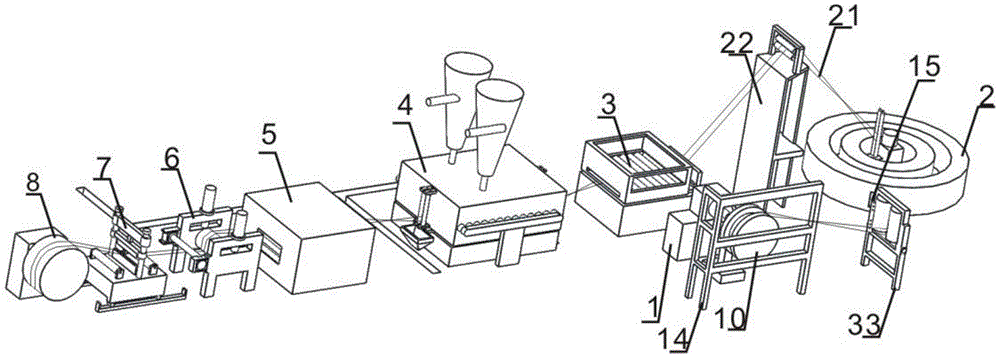 本实用新型提供一种带钢清洗生产线,包括依次设置于该生产线首端与末端方向上的开卷机、储料仓、抛砂机、喷砂机、烘干机、打卷机、剪切机、收卷机;其中,储料仓至收卷机设置在一条生产线上,收卷机设置在厂房出口处,开卷机设置在储料仓进料口方向;开卷机与储料仓之间设有带钢扶正装置,储料仓与抛砂机之间设有带钢缓冲装置;抛砂机、喷砂机、烘干机外的两端均设有引导组件;喷砂机内包括两组喷砂装置,喷砂装置包括若干个强压水泵,每个强压水泵的喷射口均对准带钢清洗带,带钢进入喷砂机的带钢清洗带上后,带钢两侧的强压水泵均同时将水喷射到带钢表面;有益效果:带钢上的铁粉杂物等能被清理的更干净。