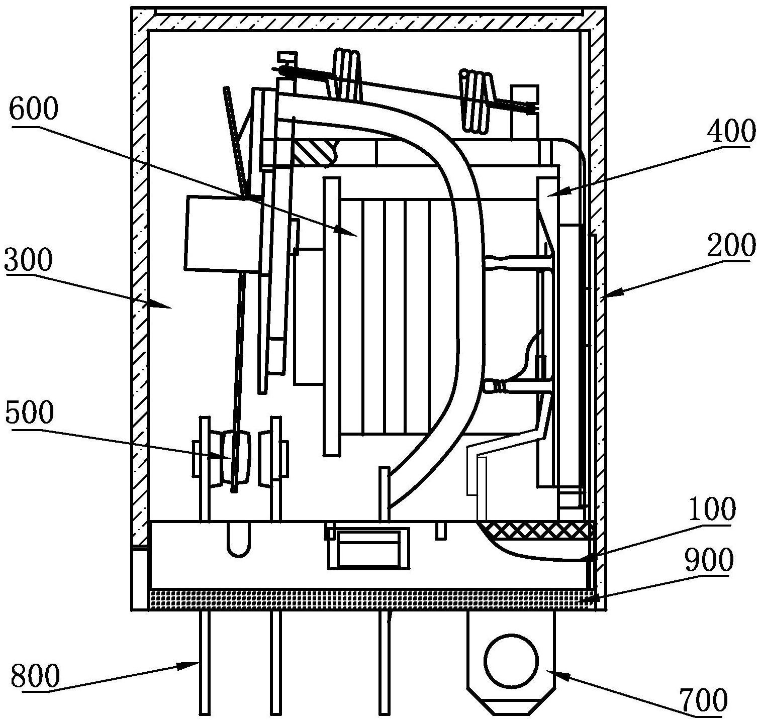 本实用新型涉及一种新型继电器,包括基座和安装于所述基座上的壳体,壳体与基座形成安装腔,在安装腔内装设有线圈架和动静触头组,所述的线圈架上绕设有线圈,基座上插设有线圈引脚和触头引脚,线圈与线圈引脚焊接,动静触头组与触头引脚焊接,位于安装腔外的线圈引脚部分与位于安装腔外的触头引脚部分垂直,位于安装腔内的线圈引脚部分与位于安装腔内的触头引脚部分平行。采用上述技术方案,本实用新型提供了一种新型继电器,位于安装腔内的线圈引脚部分与位于壳体内的触头引脚部分平行,使用同一台焊接设备即可完成对两种引脚的焊接,操作方便。