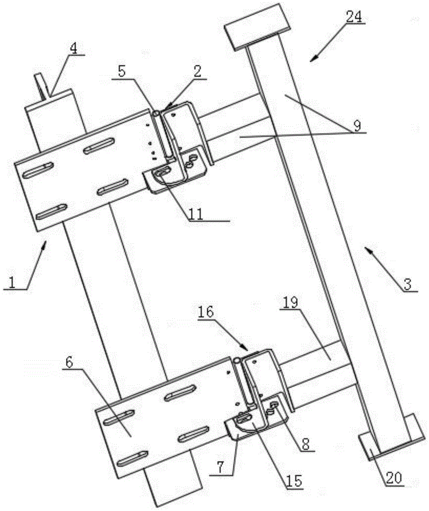 本实用新型涉及电梯机械技术领域,旨在解决现有技术中的电梯阻止装置的结构复杂、安装繁琐、占用较多的井道空间和使用不便的问题,提供一种电梯阻止装置,其包括固定组件、旋转组件和支撑组件;所述固定组件连接电梯导轨的背面,所述支撑组件通过旋转组件可转动的连接于固定组件;所述旋转组件的旋转轴平行于电梯导轨;所述固定组件包括固定板和定位板,所述支撑组件包括支撑件和连接件;所述连接件上设有孔洞,所述孔洞能够随支撑组件转动至对应定位板上任意通孔的位置,并且所述通孔与孔洞内能够通过销杆固定限位;本实用新型的有益效果是具有结构简单、安装方便、节省井道空间、使用方便且能够方便地实现电梯阻止装置适用于浅底坑。