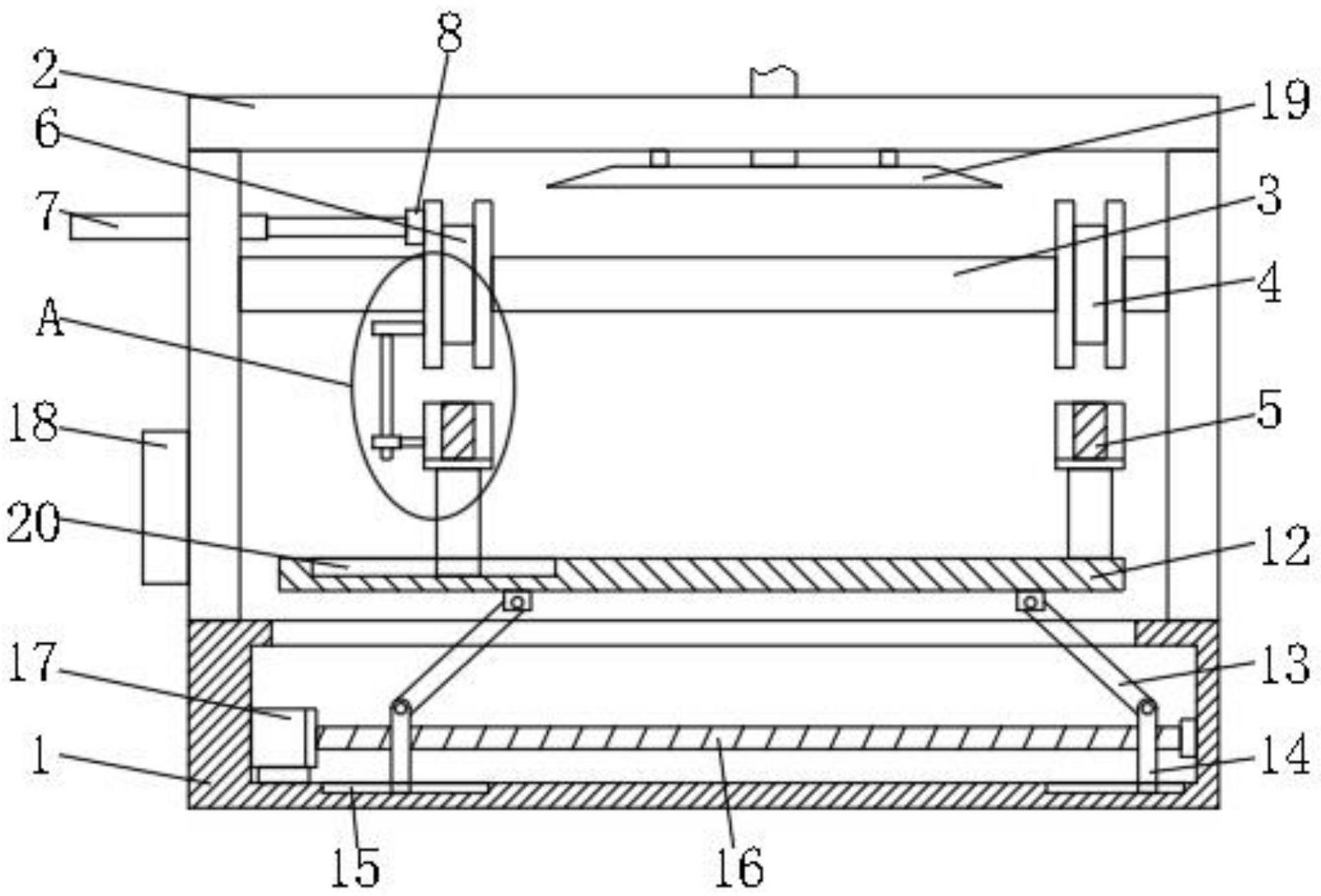 本实用新型公开了一种编织袋面拉伸设备,包括底座、框架和滑杆,所述底座上端设有框架,框架之间设有滑杆,滑杆右侧上设有固定轮,固定轮下侧设有固定夹板,所述滑杆左侧上套设有活动轮,活动轮左端设有液压缸,液压缸与活动轮连接处设有压力传感器,液压缸与框架固定连接。本实用新型使用时,将编织袋两端分别放置在固定轮和固定夹板、活动轮和活动夹板之间,电机带动丝杆转动,使两侧的支撑板相互靠近,在连杆的作用下推动升降板、固定夹板、活动夹板上升,将编织袋夹紧,固定轮和活动轮中部设有凹槽,使编织袋的固定较为牢固,便于对编织袋进行快速固定和拆卸,固定效果好,提高工作效率。