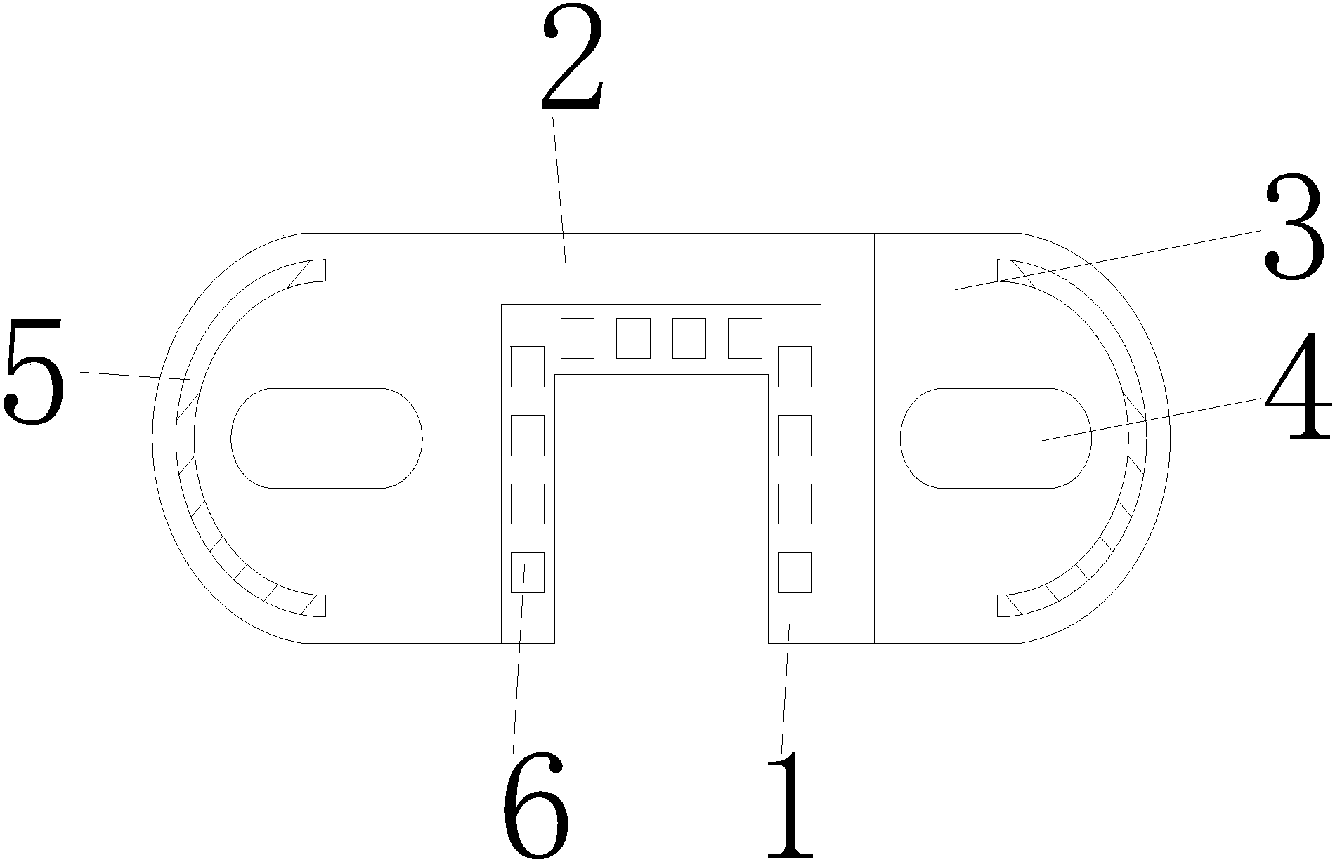 本实用新型公开了一种阳台护栏锌钢立柱带耳固定座连接件,包括固定座主体,所述固定座主体的形状为C型,并且固定座主体采用热镀锌冲压成型,所述固定座主体的外侧固定连接有增厚层,所述增厚层的两侧均固定连接有耳片,所述耳片的一侧远离固定座主体的一端开设有螺丝孔,所述螺丝孔为椭圆孔,所述耳片远离固定座主体的一端嵌设有弧形加强筋,本实用新型涉及护栏连接件技术领域。该阳台护栏锌钢立柱带耳固定座连接件,增加了连接件的强度,使阳台护栏固定座连接件不容易变形,安装固定时螺丝固定后能上下调动,缩小立柱与横杆之间的间隙,使阳台安装更紧凑,能够有效防止螺丝打紧后边缘有缝隙易渗水,使横杆切口处生锈的问题。