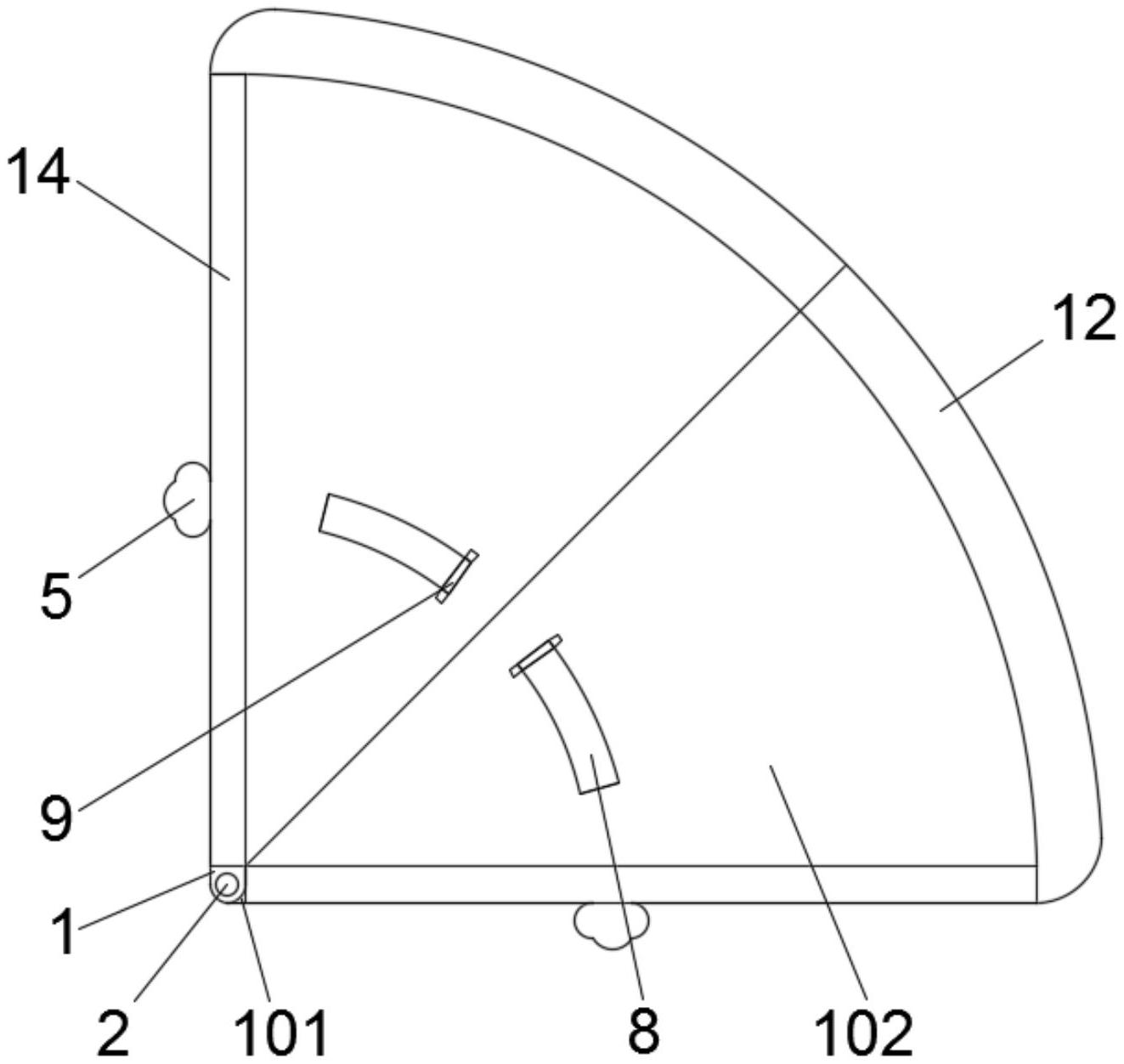 本实用新型涉及包角技术领域,尤其涉及一种配合紧密的包角,解决了现有技术中在对不同厚度的物体以及不同角度的拐角进行固定时,需要更换多种包角,降低了工作效率,在物体表面呈凹凸不平状态的时候,包角无法与物体之间紧密贴合,从而影响整体美观性的问题。一种配合紧密的包角,包角主体包括挡板部与连接部,挡板部设置有四个,每相邻两个挡板部之间呈对称状态分布,连接部设置有四个,每相邻两个连接部之间呈对称状态分布。本实用新型通过挡板部与连接板以及连接部与扇形片之间滑动进行调节包角主体的宽度与角度,便于包角主体应对宽度与角度不同的物体时都能进行紧密贴合,增加包角主体的实用性,提高工作效率。