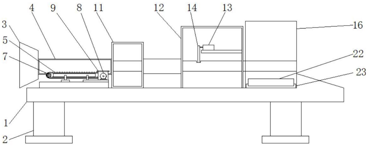 本实用新型公开了一种钢丝绳生产用调直器,属于钢丝绳生产领域。一种钢丝绳生产用调直器,包括主体和输送管道,所述主体的底部连接有底座,且底座的上方设置有进料口,所述输送管道连接于进料口的端部,且输送管道的下方设置有传送带,并且传送带的内部安装有第一齿轮,所述第一齿轮的一侧设置有第二齿轮,且第二齿轮的外侧连接有第一电机,所述第一电机的上方安装有保护盖,且保护盖的边侧设置有滑轮,所述输送管道的外侧贯穿有调直箱,所述输送管道的外侧贯穿有去锈箱,且去锈箱的内部设置有第二电机。本实用新型设置有去锈箱,能够对钢丝绳进行去锈处理,很好的避免了因为未去锈造成钢丝绳的瑕疵,进而影响建筑施工安全的问题。