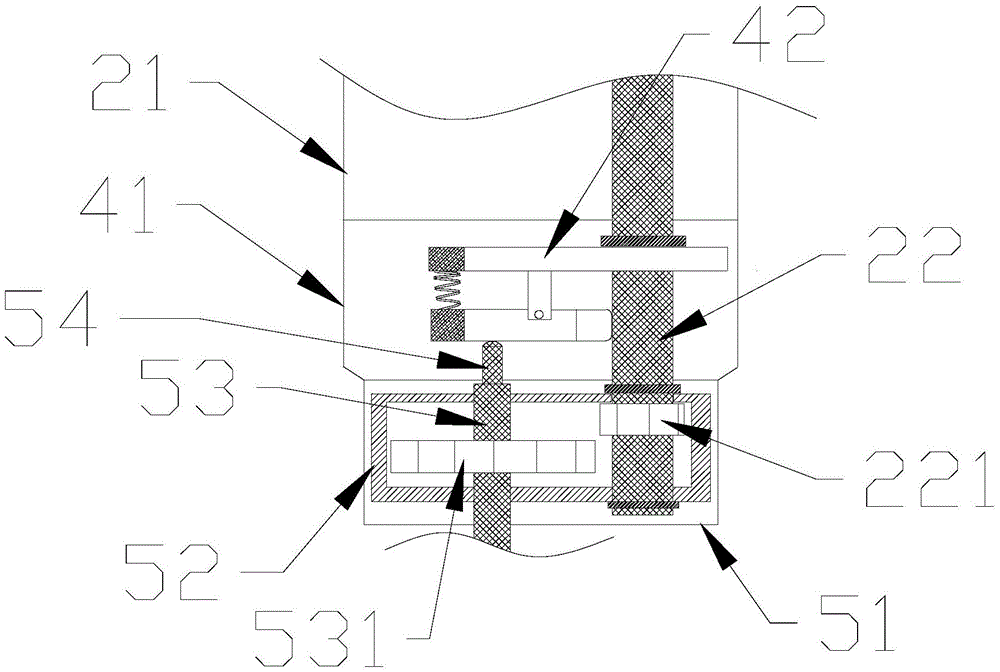 本实用新型公开了一种用于PVC快速门的手摇式断电应急开门机构,包括与门帘转轴连接的减速机。所述减速机包括电机,所述电机的一端连接有与之呈L型结构的齿轮减速机构。所述齿轮减速机构包括水平方向的齿轮传动轴,所述齿轮传动轴的一端与所述门帘转轴连接,另一端与所述电机连接。所述电机包括壳体,所述壳体内设有转轴,所述转轴的一端设有与所述齿轮传动轴匹配的齿形结构,另一端延伸出所述壳体形成外置轴端。所述外置轴端上依次设有刹车机构、手摇机构,所述手摇机构包括用于驱动所述外置轴端转动的驱动杆,所述驱动杆的上端设有用于释放所述刹车机构的刹车释放杆。本实用新型能够在断电情况下快速、安全地开启门帘。