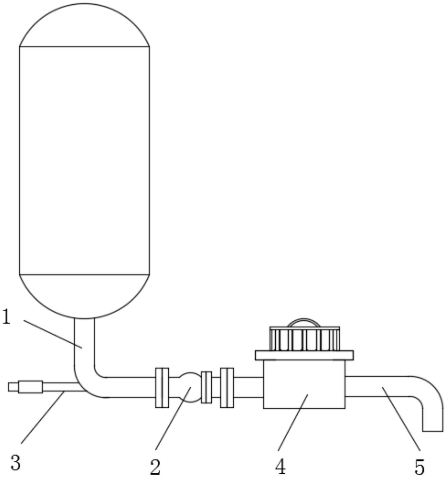 本实用新型涉及一种新型铝银浆储存中转装置,属于化工设备技术领域,包括依次连接的储罐下料管、阀门和筛分机进料管,所述储罐下料管的一端连接有进入高压空气的气管,且所述气管位于阀门进料端前端,所述阀门与筛分机进料管之间设有除铁装置,所述气管的前端和储罐下料管一体连接,气管靠近储罐下料管位置处设有气阀;本实用新型相比较现有技术,该装置在同类型装置基础上进行优化,扩大其应用领域,通过设置的除铁装置防止铝银浆中的铁在分级过程中进入下一道工序,通过设置的气管为防止储罐中的物料堵塞罐底阀门,并且设备制作简单、操作方便,运行稳定可靠。