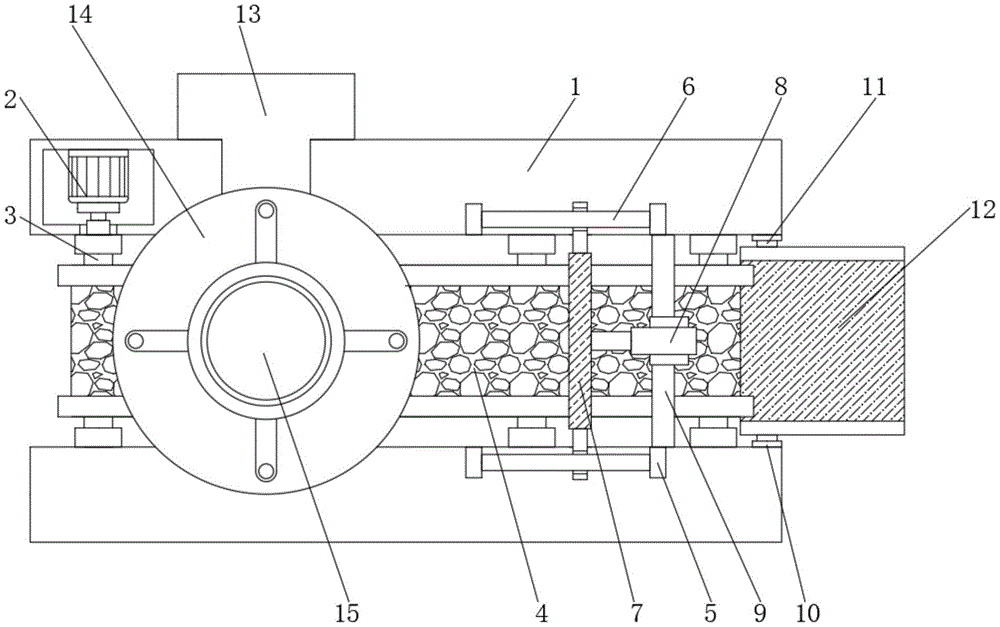 本实用新型涉及陶瓷加工辅助装置技术领域,且公开了一种陶瓷干燥窑的上料机构,解决了目前市场上的陶瓷干燥窑的上料机构人工添加,输送不便,给工作人员带来诸多不便,且降低了其工作效率、燃料添加量无法进行控制,容易出现燃料添加过多或者过少的情况,降低干燥窑使用效果的问题,其包括基座,所述基座的内腔安装有驱动电机,驱动电机的输出端安装有传动杆,传动杆的中部安装有输送带,基座的顶部固定有固位块,固位块的侧面固定有滑动杆,滑动杆的一端安装有推动杆;本实用新型,具有输送便捷,无需反复添加燃料,工作效率高、燃料投放量可控制,不会出现燃料投放过多或过少的情况,干燥窑实用效果好的优点。