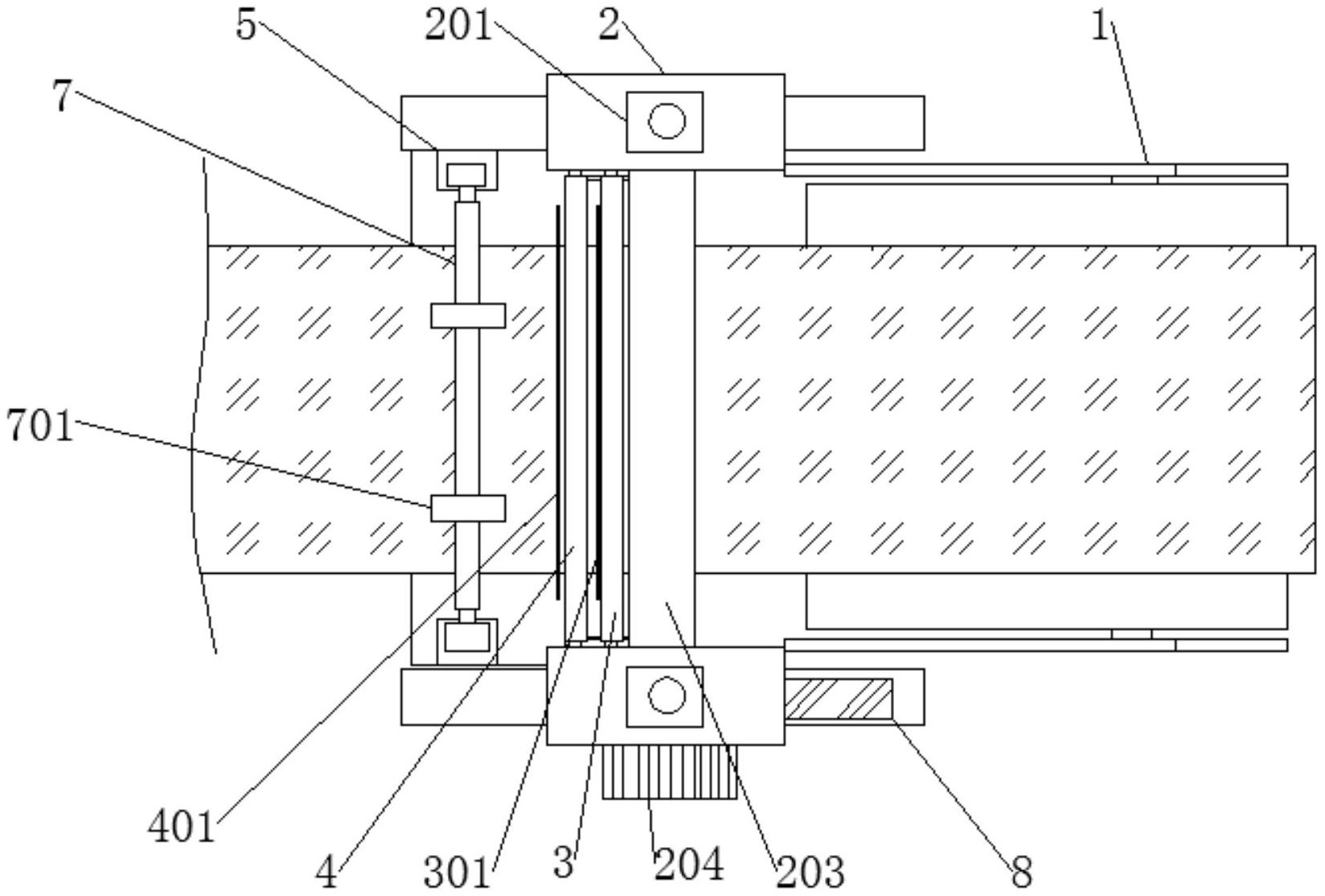 本实用新型属于热压机技术领域,尤其为一种热压机,包括输送带和两个支撑架,所述输送带位于两个支撑架之间的右侧,两个所述支撑架的上端面均固定安装有气缸,两个所述支撑架的外侧壁均贯穿开设有通孔,两个所述通孔的内部均滑动连接有移动块,两个所述气缸的输出端分别贯穿两个通孔的上端面且与两个移动块的上端面固定连接,从而通过使两个测量轮在底材的表面滚动,底材的厚度将两个测量轮和滑块的位置抬升,从而使得两个位移传感器检测两个滑块移动的距离即为底材的厚度,达到将底材的厚度进行测量的效果,且可根据底材的厚度调节上压辊与下压辊的距离,避免底材厚度不一时,压膜出现皱纹或气泡。