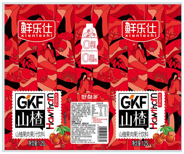 1.本外观设计产品的名称:瓶贴(山楂果肉果汁1250g)。2.本外观设计产品的用途:本外观设计产品用于粘贴在瓶体外部,起标识作用。3.本外观设计产品的设计要点:在于形状与图案的结合。4.最能表明设计要点的图片或照片:主视图。5.本外观设计产品为平面产品,故省略其它视图。
