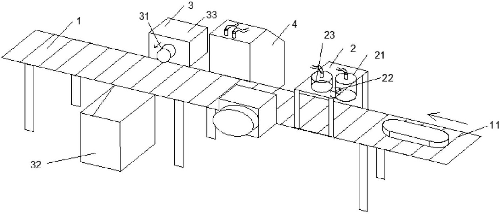 一种罐头真空检测设备,其特征在于,包括自动输送装置、检测装置、推送装置以及控制装置,所述控制装置分别与所述自动输送装置、检测装置、推送装置电性连接,所述控制装置和所述推送装置分别设置于所述自动输送装置的一侧或者两侧,所述检测装置包括打点仪以及声波接收装置,所述打点仪敲击待检产品发出声波,所述声波接收装置接收从待检产品发出的声波并发送声波数据给所述控制装置,所述控制装置控制所述推送装置工作,能够快速地精准地判断出罐头内真空情况和罐头是否变形,避免了人工判断的误差,提高了检测的速度。