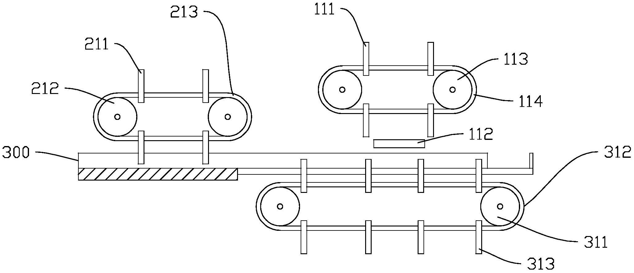 本实用新型公开了一种酥饼自动入盒机构,包括:成品输送机,用于输送胶盒;第一推送机,用于将酥饼送入到位于所述成品输送机的胶盒中;第二推送机,所述第二推送机与所述成品输送机对接,所述第一推送机所述第二推送机用于将装有酥饼的胶盒送出;其中,所述第一推送机设置有导向托板,所述导向托板设置在所述成品输送机的上方向,所述导向托板用于承接酥饼,将酥饼放置在导向托板中,同时将胶盒放置到成品输送机中,当胶盒沿Y方向输送经过导向托板时,第一推送机推动酥饼沿Y方向移动,使酥饼从导向托板上推落,使酥饼刚好落到下方的胶盒,然后第二推送机将胶盒送出,实现自动将酥饼装入胶盒中,提高生产效率,降低劳动强度。