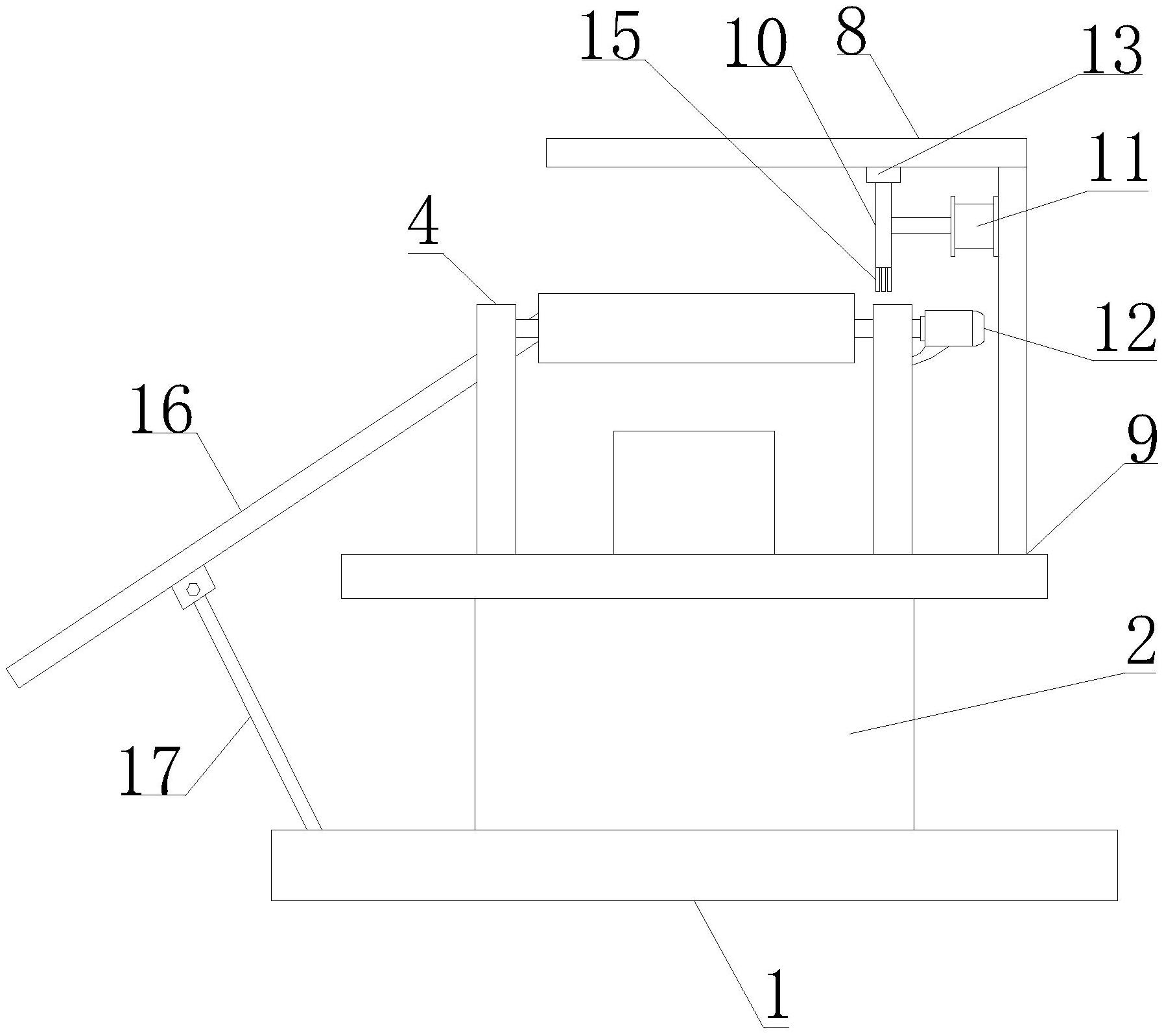 一种饼干成品重量检测装置,包括底座、主机箱移动板、伸缩装置和倾斜板;底座上设有称重装置;称重装置上设有支撑板;支撑板上设有用于输送待测重成品饼干的输送组件和第二安装板;倾斜板朝向底座向下倾斜并通过支撑杆连接底座;第二安装板上端设有第一安装板;移动板滑动连接第一安装板的下端面上,移动板下端面均匀设有刷毛,移动板连接用于驱动移动板朝向或远离倾斜板移动的伸缩装置;伸缩装置安装在第二安装板上;主机箱安装在支撑板上,主机箱上设有按键模块和显示器,主机箱内设有控制器和电源模块;电源模块、伸缩装置、控制器、按键模块、显示器和输送组件电性连接。本实用新型能快速对成品饼干进行称重检测并能剔除不合格饼干。
