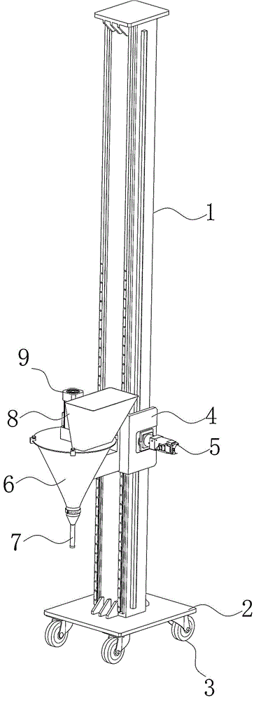 本实用新型提供一种微型添加料自动投料装置,包括柱体,柱体底端设有移动装置,柱体上设有下料斗,下料斗通过滑动板与柱体滑动连接,滑动板上设有驱动装置,驱动装置带动下料斗在柱体上滑动,下料斗下方设有下料管,下料管内部设有螺旋输送轴,螺旋输送轴通过驱动杆与下料斗上方的第二电机连接,实现自动上升加料,且结构简单,使用方便,加料的效率高,省时省力,提高了工作效率,经济实用。