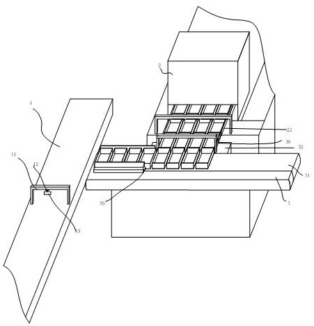 本实用新型提出一种巧克力生产线,包括控制器,冷却隧道、输送机架、位于输送机架上的输送带以及翻模链道,输送机架包括前后两段,机架前段上设有用于检测输送机架后段有无模板的光电开关;所述输送机架后段的模板入口端顶部设有档杆;所述翻模链道的入口端设有一可升降的模板挡板,控制器根据光电开关检测到有无模板的信号,控制模板挡板下降或上升从而放行模板或阻挡模板前行。本实用新型在冷却隧道与输送机架的接口端设置档杆,从而防止模板掉落,保证模板的输送。