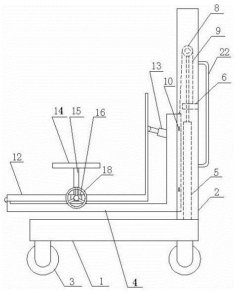本实用新型公开了一种饺子馅倾倒装置,包括底座、龙门架、升降机构、倾倒机构和夹持机构,底座下端设有移动轮,底座上端一侧设有龙门架,龙门架上设有升降机构,升降机构包括升降座、第一气缸、固定板、顶杆、齿轮、链条和控制第一气缸工作的第一控制组件,升降座位于底座正上方,升降座两侧设有滚轮,龙门架内侧设有用于滚轮上下滚动的滑轨,第一气缸安装于底座上,且其顶端穿过设在龙门架上的固定板,并向上延伸连接顶杆,顶杆两端转动连接有齿轮,链条一端与升降座连接,另一端绕过齿轮与固定板连接,升降座远离龙门架一侧设有倾倒机构。本实用新型可降低劳动强度,提高生产效率,保证工人的人身安全。