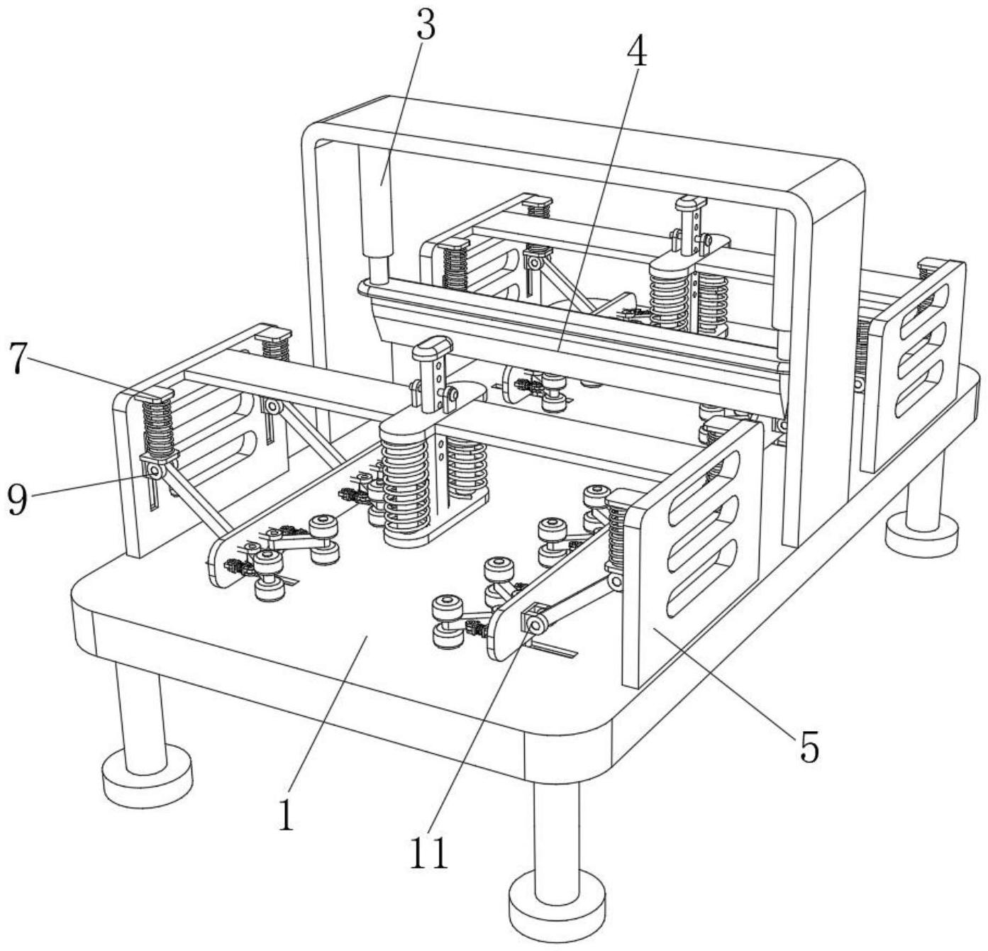 本实用新型公开了一种食品加工用切块机,属于食品加工技术领域,其包括稳定横板,所述稳定横板上表面的中部固定安装有龙门架,所述龙门架顶部内壁固定安装有电动推杆,所述电动推杆的输出端固定安装有切割刀,所述稳定横板上表面的左右两侧均固定安装有固定立板。该食品加工用切块机,通过设置按压弹簧柱在自身弹力的作用下带动按压平板对食品进行按压固定,同时将限位杆穿过限位支架插入到拉动竖杆内进行限位固定操作,使得对食品具有更好的限位固定效果,能够更好的保证对食品进行切块时的稳定性,无需人工手动进行按压稳定,使得对食品的切块操作更加稳定,有助于更好的对食品进行切块操作。