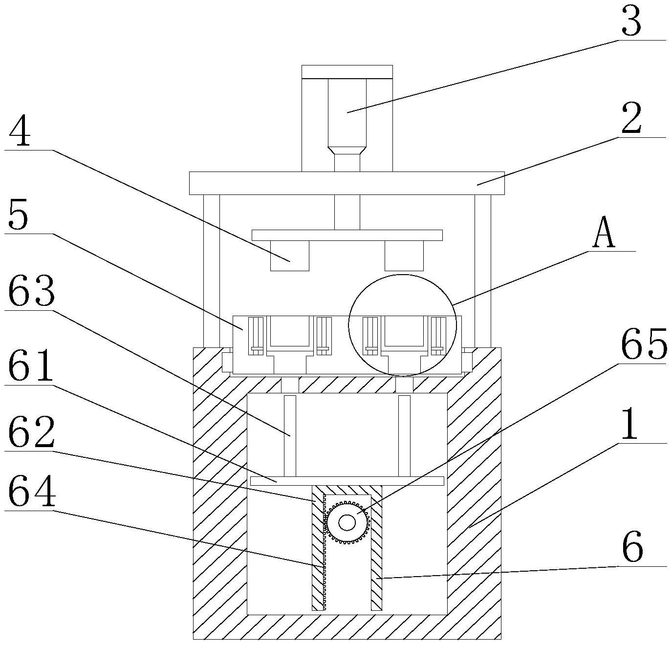 本实用新型涉及一种糖果压制成型设备,属于糖果制作技术领域,包括外壳主体,所述外壳主体的顶端滑动连接有模具主体,所述外壳主体的内部设有分离机构,所述分离机构包括n型块,所述n型块在外壳主体的内部活动,所述n型块的顶端固定连接有活动顶板,所述活动顶板的顶端固定连接有顶杆。通过在n型块的凹陷部内转动连接有齿轮,n型块上的凹陷部一侧固定连接有齿条,齿轮与齿条啮合,方便活动顶板的运动,方便顶杆活动,方便糖果进行脱模。通过滑动块和固定杆的设置,保证活动块的运动轨迹,避免活动块出现偏移的现象,通过将活动块设置为凹型结构,方便成型的糖果取出,同时避免糖果从滑槽进入第二空腔内。