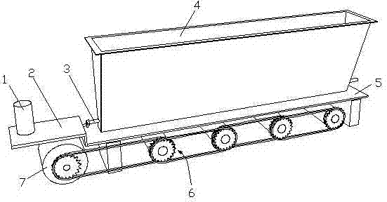 本发明涉及一种气动的雪糕表面加粒机,包括:一个料斗、一组下料推板、一组螺旋下料装置、一个气动马达、一个气动振动器,所述的料斗的底板上设有一组间距均布的下料孔,每个下料孔的上侧分别设有推板,推板由推杆串接在一起,推杆的其中一端连接推杆气缸;所述的料斗的底板下设有一组间距均布的螺旋下料装置,每个螺旋下料装置的齿轮分别通过链轮相互连接,其中一个螺旋下料装置通过链链轮连接气动马达,并且当气动马达启动时,每个螺旋下料装置同步转动。本发明采用气动马达传动便于控制马达旋转的角度,使下料均匀,工作更加稳定。