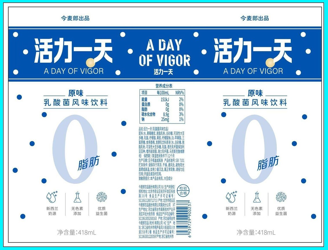 1.本外观设计产品的名称:瓶贴(活力一天)。2.本外观设计产品的用途:用于饮料瓶的外包装。3.本外观设计产品的设计要点:在于图案与色彩的结合。4.最能表明设计要点的图片或照片:主视图。5.请求保护的外观设计包含色彩。6.本外观设计产品为平面产品,省略其他视图。