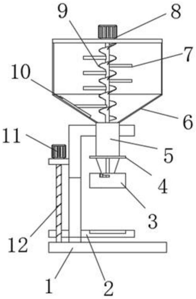 本实用新型公开了一种精酿米酒制造中的灌装装置,包括底座和限位板,所述底座顶部的一侧外壁安装有电机二,所述电机二输出轴的一端通过联轴器连接有螺纹杆,所述螺纹杆的底部外壁通过螺纹连接有支撑板,所述底座底部的一侧外壁开设有滑槽,所述支撑板与滑槽滑动相连接,所述底座的顶端外壁开设有灌装孔,所述灌装孔的内壁设置有连接管,所述连接管的底端外壁安装有灌装头,所述连接管的底端外壁套接有环形板,所述环形板底端的两边外壁均固接有立杆。本实用新型灌装时酒瓶靠近灌装头,且瓶口被限位板包裹防护限位,不容易接触空气变质和洒落,酒瓶不会晃动摔倒,方便根据酒瓶型号对限位板进行更换,提高了灌装装置的使用效率。
