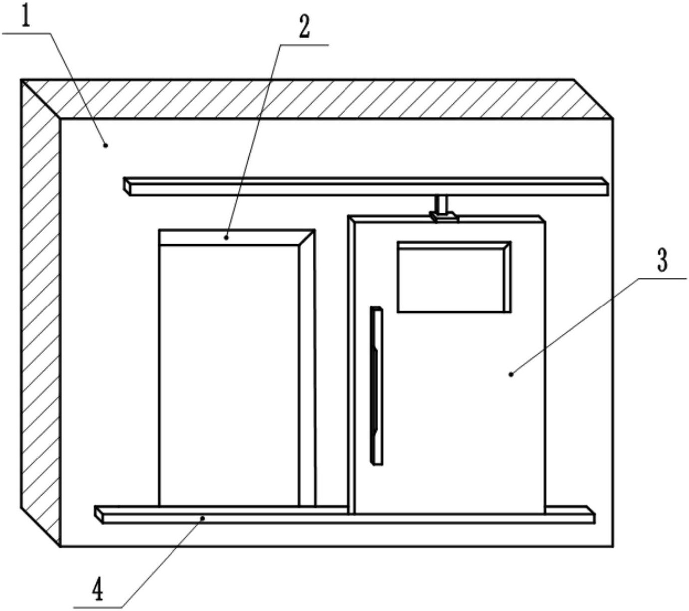 本实用新型涉及冷库技术领域,具体公开了常温低温自动化立体仓库,包括仓库本体、门框和罩盖门框的平移门;还包括:齿条设置于第一滚轮与第二滚轮之间,齿条一侧表面与平移门底面固定连接,齿条另一侧表面与第一齿轮啮合;第二凹槽设置在仓库本体内的地面上;第三滚轮设置在第二凹槽内,第三管轮两侧设有外凸的转动轴,第三滚轮的转动轴与第二凹槽转动连接;第一连接转轴贯穿第一凹槽和第二凹槽,第一连接转轴一端与第一齿轮转动轴一端固定连接,另一端与第三滚轮转动轴一端固定连接。采用本实用新型的技术方案能方便运输货物的工人进出。
