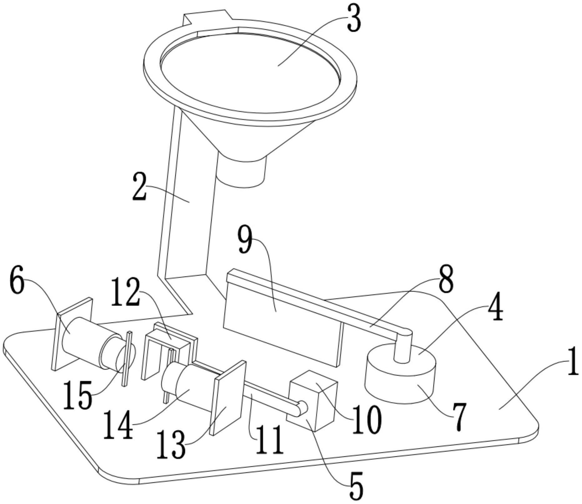 本实用新型公开了一种固态调味料包装机,包括调味料承接零部件固定板、进料斗固定支架、调味料进料斗、调味料转移装置、套袋承接装置和挤压加热封装装置,所述套袋承接装置设于调味料承接零部件固定板上,所述挤压加热封装装置设于调味料承接零部件固定板上,所述调味料转移装置包括拨动电机、拨动杆和拨动盘,所述套袋承接装置包括伺服电机、转动抬杆和包装袋固定台,所述挤压加热封装装置包括抵住固定板、液压推动桩和加热塑封条。本实用新型属于火锅配料技术领域,具体是一种固态调味料包装机,有效解决了目前市场上的固态调味料包装需要人工参与的成分比较高,自动化程度较低的问题,是一种生产包装效率高的装置。