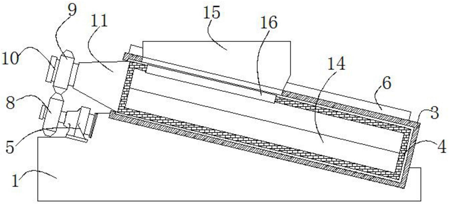 本实用新型公开一种泡菜加工用杀菌机,包括底座,所述底座的顶部通过安装块固定连接有套筒,所述套筒的内部转动连接有杀菌筒,并且套筒的外侧设置有杀菌机构,所述杀菌机构包括电机和磁块,所述磁块工设置有两个,并且两个磁块分别设置于套筒的两侧,所述电机固定于底座顶部的左侧,并且电机的输出轴固定有连接有主齿轮,所述主齿轮的顶部啮合有副齿轮,并且副齿轮的中部贯穿有转轴,所述转轴的右端固定有安装座,并且安装座的右侧与杀菌筒的左侧固定连接。本实用新型不仅杀菌效果较好,同时不影响食品的风味,该设备还可以起到暂时储存产品的作用,能够使车间的空间得到充分的利用。