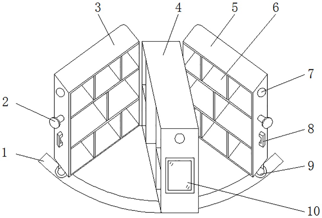 本实用新型公开了一种新型手动档案密集柜,包括柜体、第一放置架和第二放置架,所述柜体的两侧分别通过铰链活动安装有第一放置架和第二放置架,第一放置架和第二放置架靠近柜体的一侧皆均匀设有档案放置仓,且柜体两侧的四个角位置处皆设有档案格,所述柜体的中心位置处设有密封柜,密封柜的下方柜体内设有容纳腔,容纳腔的两侧皆滑动安装有活动抽板,且活动抽板远离容纳腔一端的底部通过销轴活动安装有折叠支撑腿。本实用新型通过在密封柜内部隔板的中心位置处设置干燥箱,并在干燥箱的内部放置有干燥剂包,保证密封柜内部空气干燥,从而避免机密人事档案生霉、生蛀,造成损坏。