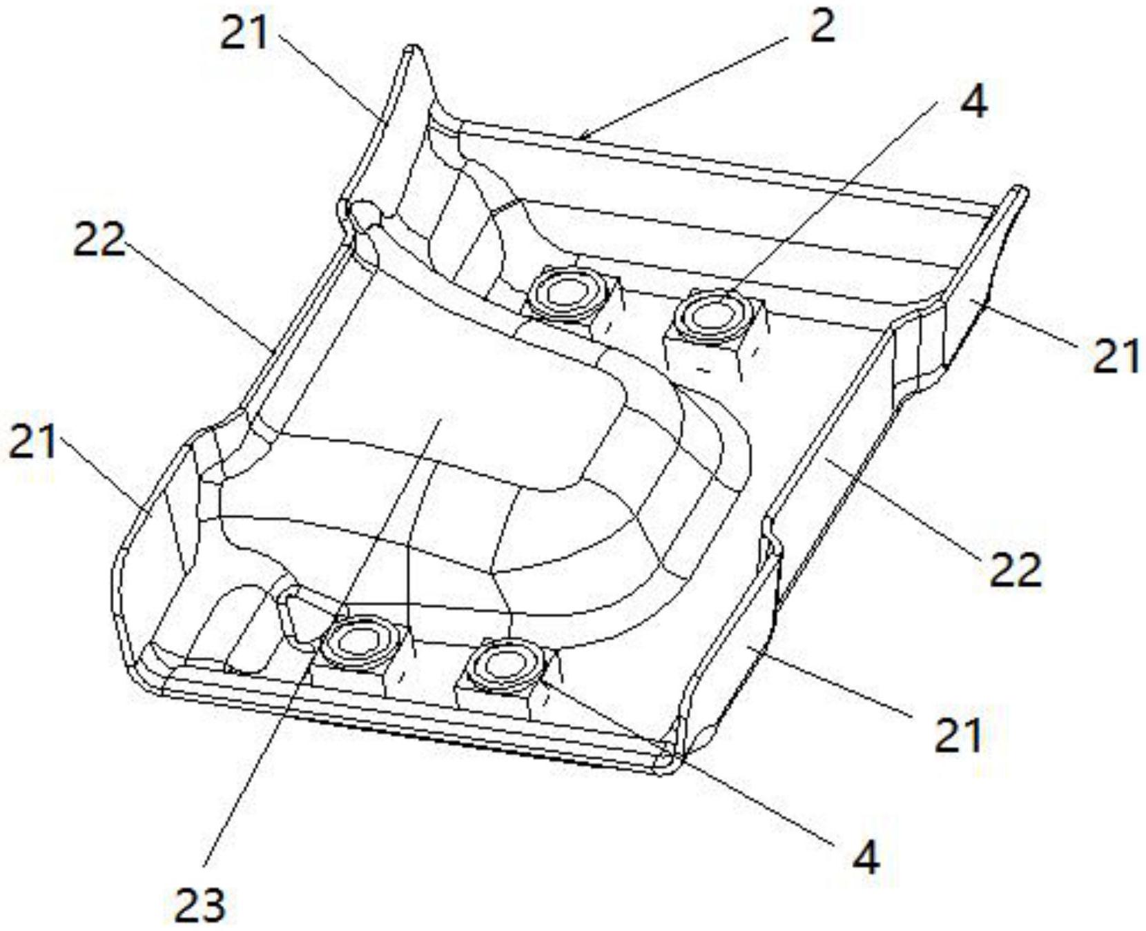 本实用新型公开了一种车门铰链的加强结构,包括焊接在侧围前立柱加强板上的加强件,加强件为单面开口的凹槽结构,加强件一组对向设置的侧壁为焊接壁并焊接在侧围前立柱加强板上,焊接壁上还设有第一加强部;加强件的槽底焊接有螺母,螺母与螺栓相作用并将加强件、车门铰链固定在一起。采用本实用新型,加强件的两侧均焊接在侧围前立柱加强板上,增强了侧围前立柱加强板的强度及稳定性;由于加强件通过螺栓与车门、铰链固定连接,因而增强了车门的稳定性和耐久度,减少车门由于自重而下掉现象的发生。