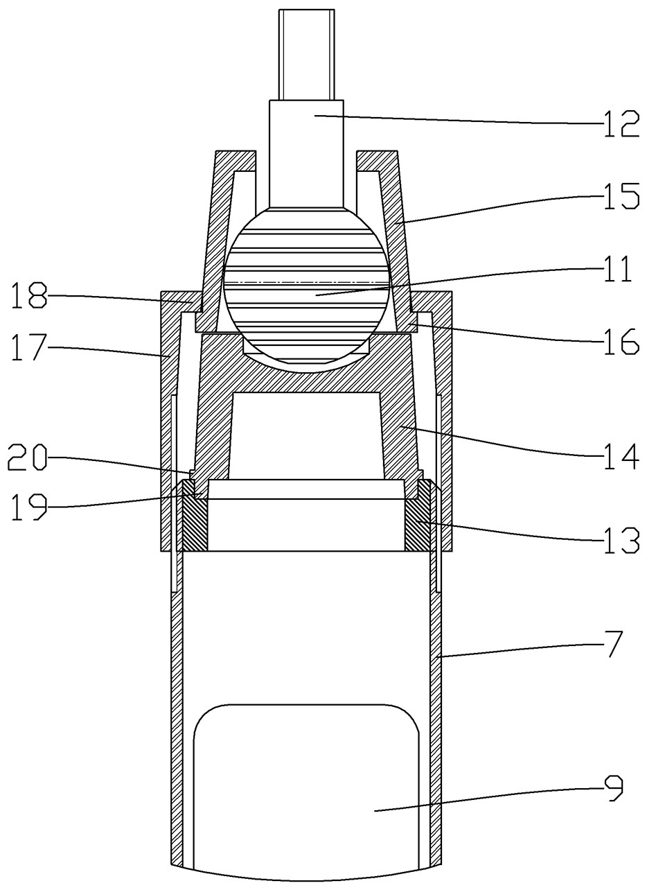本实用新型涉及一种能够调节角度的太阳能板安装装置。该能够调节角度的太阳能板安装装置包括安装板、支撑杆以及角度调节组件;安装板的前侧面用于安装太阳能板的安装板,角度调节组件包括球头、球头座、球头卡座、压紧帽,球头上设有与安装板固定连接有连接杆,球头座卡在支撑杆上端,球头座上端具有与球头相匹配的弧面,球头卡座位于球头座上侧,球头卡座内具有容纳球头、将球头压在球头座上的锥面,压紧帽的下端螺纹连接在支撑杆上端,压紧帽的上端具有下行时推动球头卡座下行的下压结构。相比于现有技术,本实用新型的能够调节角度的太阳能板安装装置能够调节太阳能板高度和角度,使太阳能板能够朝向太阳布置,使太阳能板能够吸收更多太阳光。